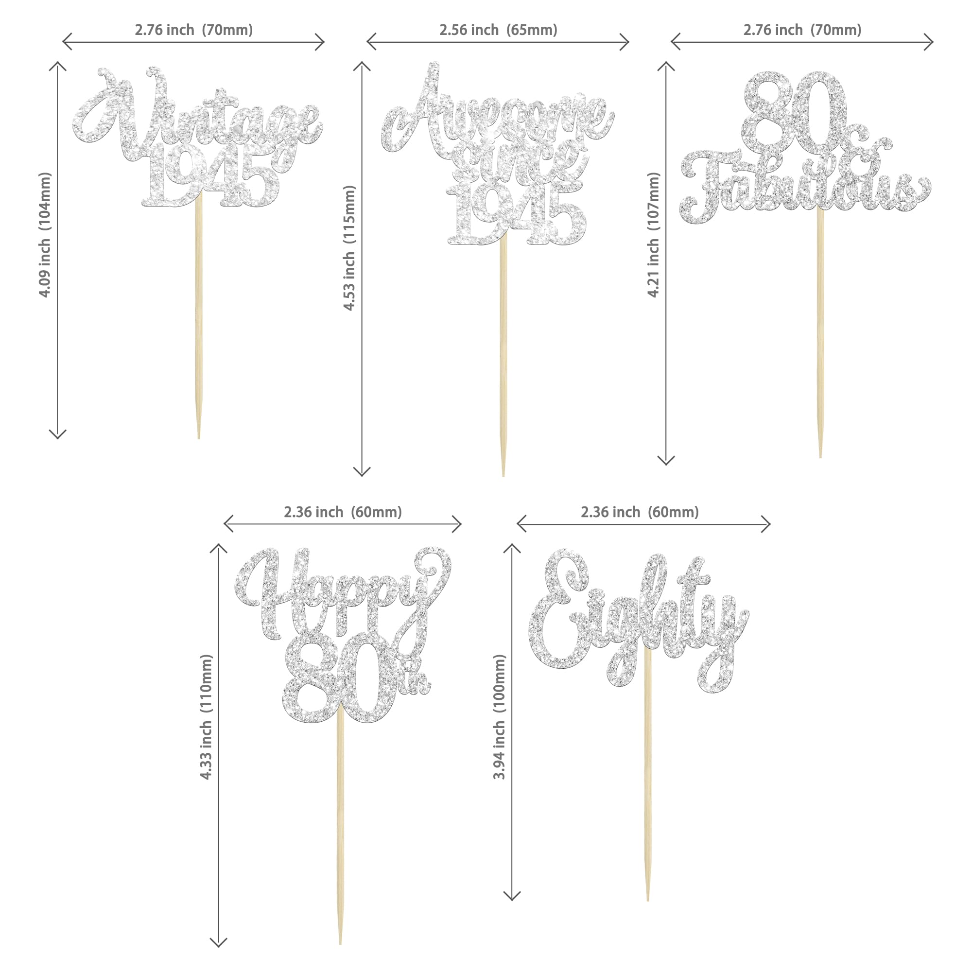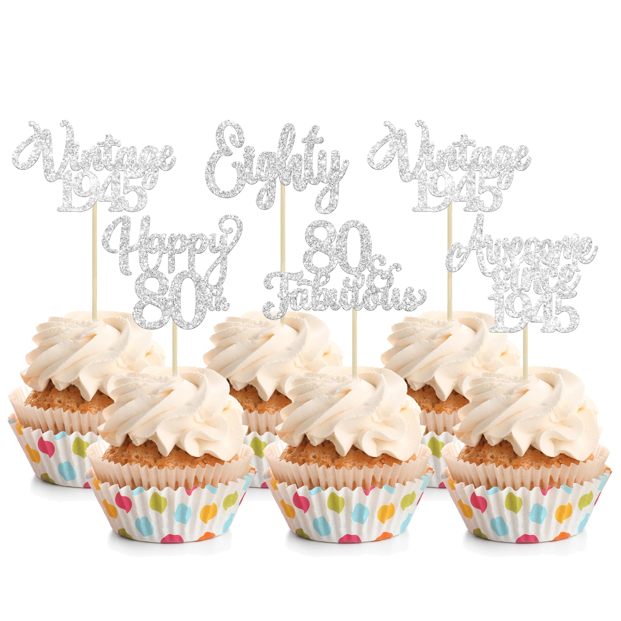 Material and Usage - Usage: They are perfect for vintage 1945 theme party, 80th birthday theme party, 80th wedding anniversary theme party,cheers to 80 years theme party cupcake decorations, which make the cupcake look tastier and more attractive. - Material: Made of paper material, solid, not easy to deform and fade and can reuse for many times; Please don't put them into oven for they are only decorative and not edible. Package and Size - Package: Pack of 30Pcs. Size: W 2.4"*H 3.9"/W 6*H 10cm(Include Stick). Comes with assembled, so you can insert into your cake directly, which make your cake more interesting. - If you want to return the item, please kindly contact us first, then we will deal with it until you are satisfied. Note 1.The cupcake topper picks have pointed end, please keep away from children when using. 2. These cupcake toppers are for decoration purposes only, not edible and do not place in oven or use for baking. 3. Due to the light and screen difference, the item's color may be slightly different from the pictures.