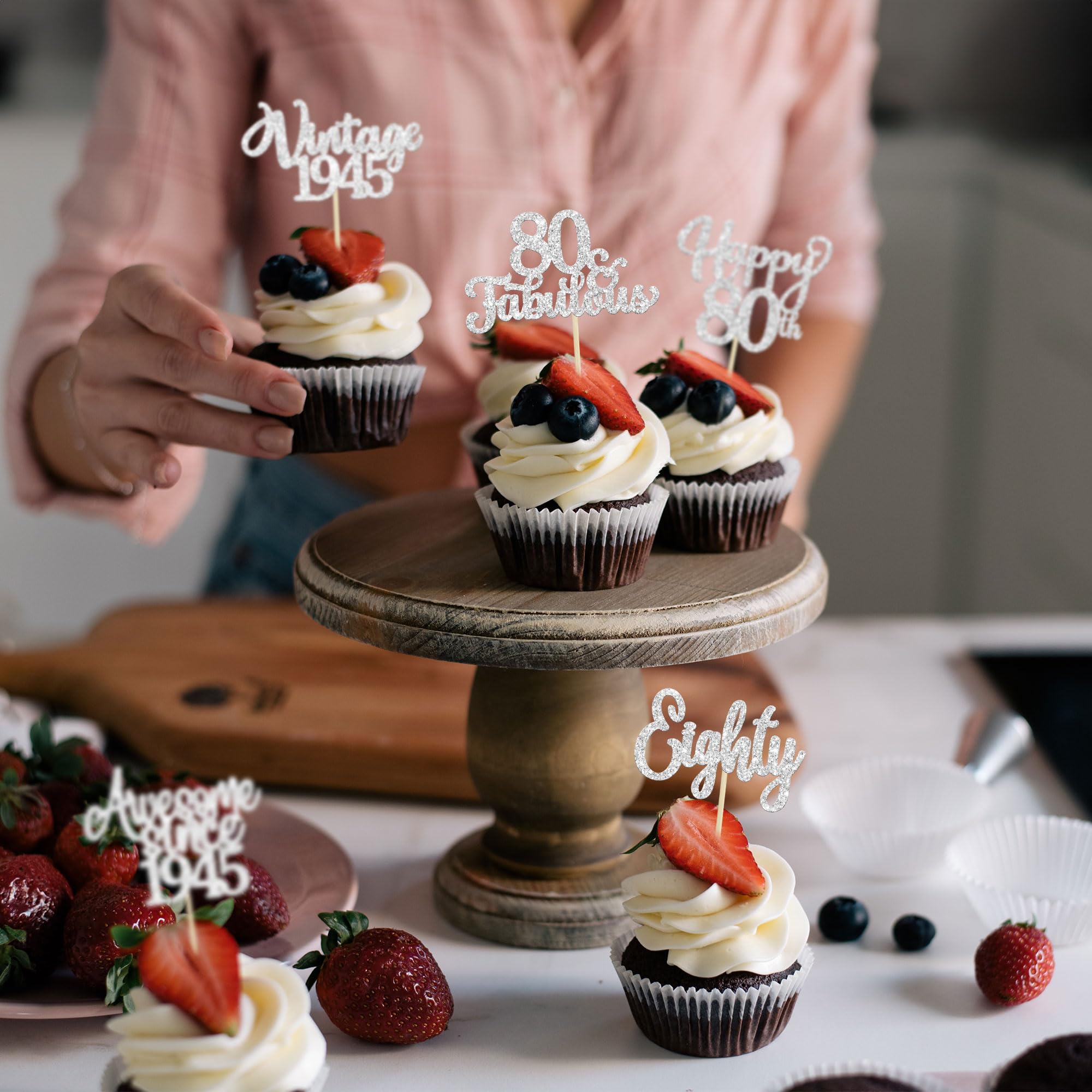 💖【Birthday Party Supplies】: 30Pcs Number Cupcake Toppers are perfect for vintage 1945 theme party, 80th birthday theme party, 80th wedding anniversary theme party,cheers to 80 years theme party cupcake decorations, they will make your cupcake more attractive and bring the fun to your party, make your guests fall in love with them!