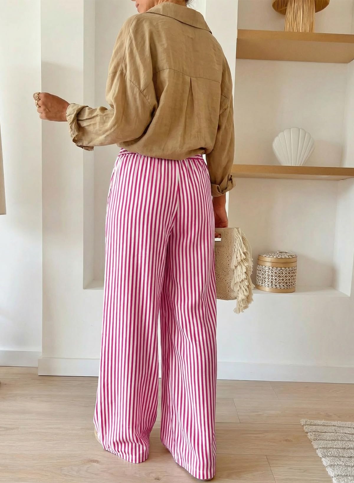 Stylish Design: Features a trendy striped pattern, perfect for both casual outings and dressier occasions