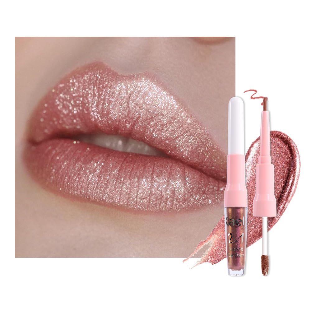2 IN 1 Lip Liner & Metallic Lipstick: The double ended design made you can use lipstick and lip liner on both ends. New design with dual heads lipstick & lip liner in one, for draw delicate lip line before applying lipstick. It combines lip line and metallic lipstick and makes double-end lipstick more perfect,meets the need of all occasions.