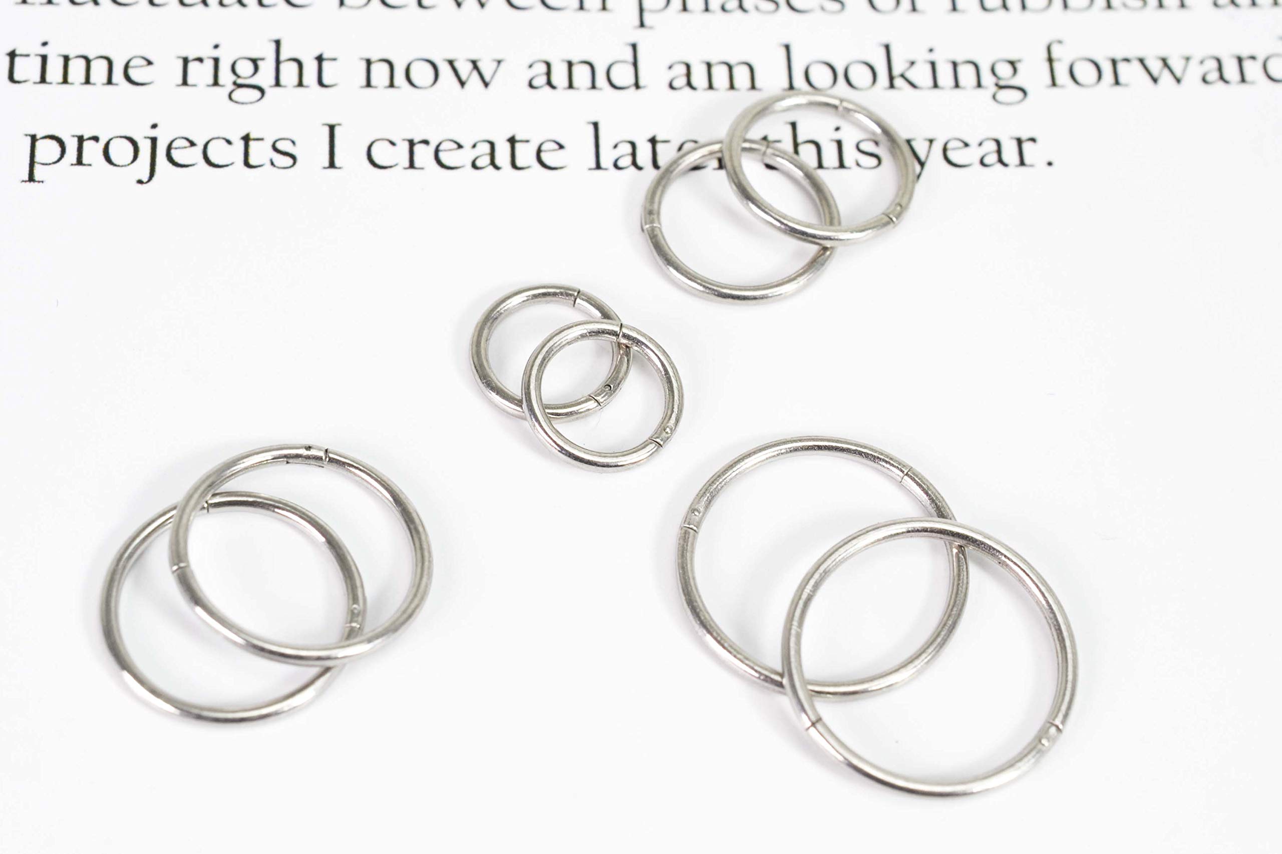 Surgical steel hoop earrings: made of 316L surgical steel, hypoallergenic. good polished, smooth surface.safe for sensitive skin. cassic round seamless hinged hoop design,simple and elegant.perfect as daily jewelry,trendy and easy-matching with your wardrobe, flexible clicker closure, convenient to open or close