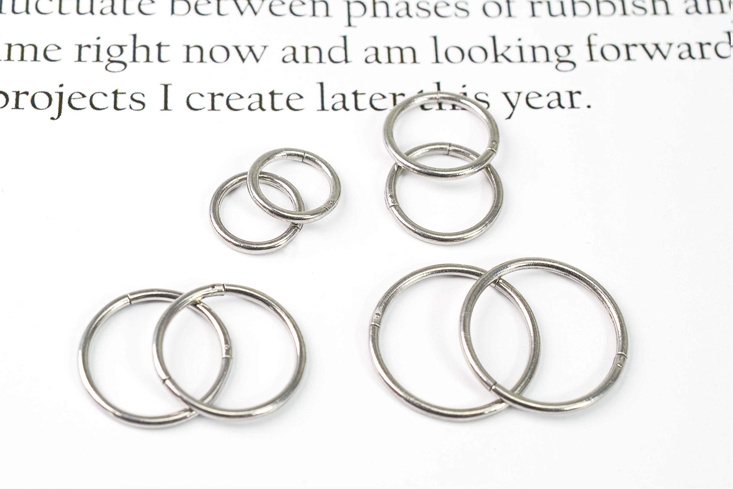 Description 4Pairs 18G Surgical Steel Hinged Clicker Segment Nose Rings Hoop Helix Cartilage Daith Tragus Sleeper Earrings Body Piercing for Women Men 6mm 8mm 10mm 12mm Tips: if it doesn’t close properly, you can squeeze or pull slightly to make both ends connect to each other. This works. Classic earlobe design suit for women, men.Using them freely for any body parts you like.Perfect for eyebrow,eye,nose,septum,lip,ear,helix,cartilage,rook,snug,daith,conch,tragus,anti-tragus,lobe,belly button and nipple piercing. Colors available: Silver/Gold/Black/Rose Gold/Blue/Rainbow Diameters INFO: HOOP SIZE SUGGESTIONS: For Nose Piercing: Nose Hoop ( Higher on the nose ) --- 10mm; Nose Hoop ( closer to the edge ) --- 6mm 8mm; Septum Hoop --- 8mm 10mm. For Lip Piercing: Lip rings --- 8mm 10mm. For Ear Piercing: Helix earring --- 6mm 8mm and 10mm; Cartilage Earring Hoop --- 6mm and 8mm; Rook Piercing Jewelry --- 6mm 8mm and 10mm; Snug Piercing Hoop --- 6mm; Daith Earrings Hoop --- 6mm and 8mm; Conch Piercing Jewelry --- 10mm and 12mm; Tragus Earrings Jewelry --- 6mm and 8mm; Anti-Tragus Jewelry --- 6mm; Lobe Hoop --- 9mm and 10mm, 2nd and 3rd lobe --- 8mm. HQLA Service HQLA strive to bring you the highest quality jewelry at unbeatable prices. This is why we are sure you will be more than satisfied with our services. If any inquiry or problem with our product, please contact us and we will offer a satisfying answer. Worry-free Return and Exchange: We accept return or exchange for any reason ,so please feel safe to order. For more details, please contact us. Warning: small parts. this item is not intended for users under 12 years old.
