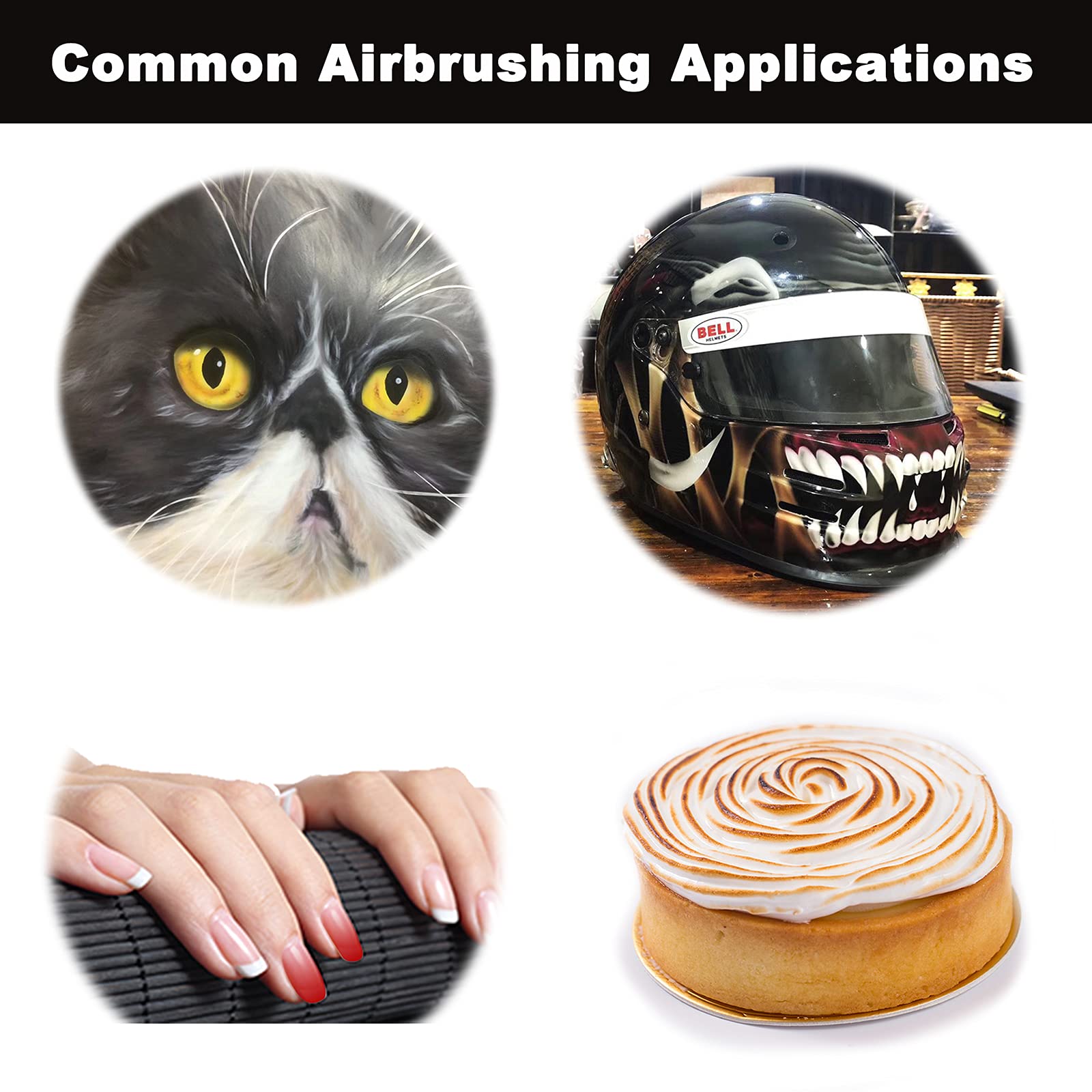 MULTI-APPLICATION: Airbrush for cake decorating, models, hobby, crafts, auto graphics, temporary tattoo, nail art, makeup. Suitable with acrylic paint, body art ink, food colors, nail color and air brush foundation.