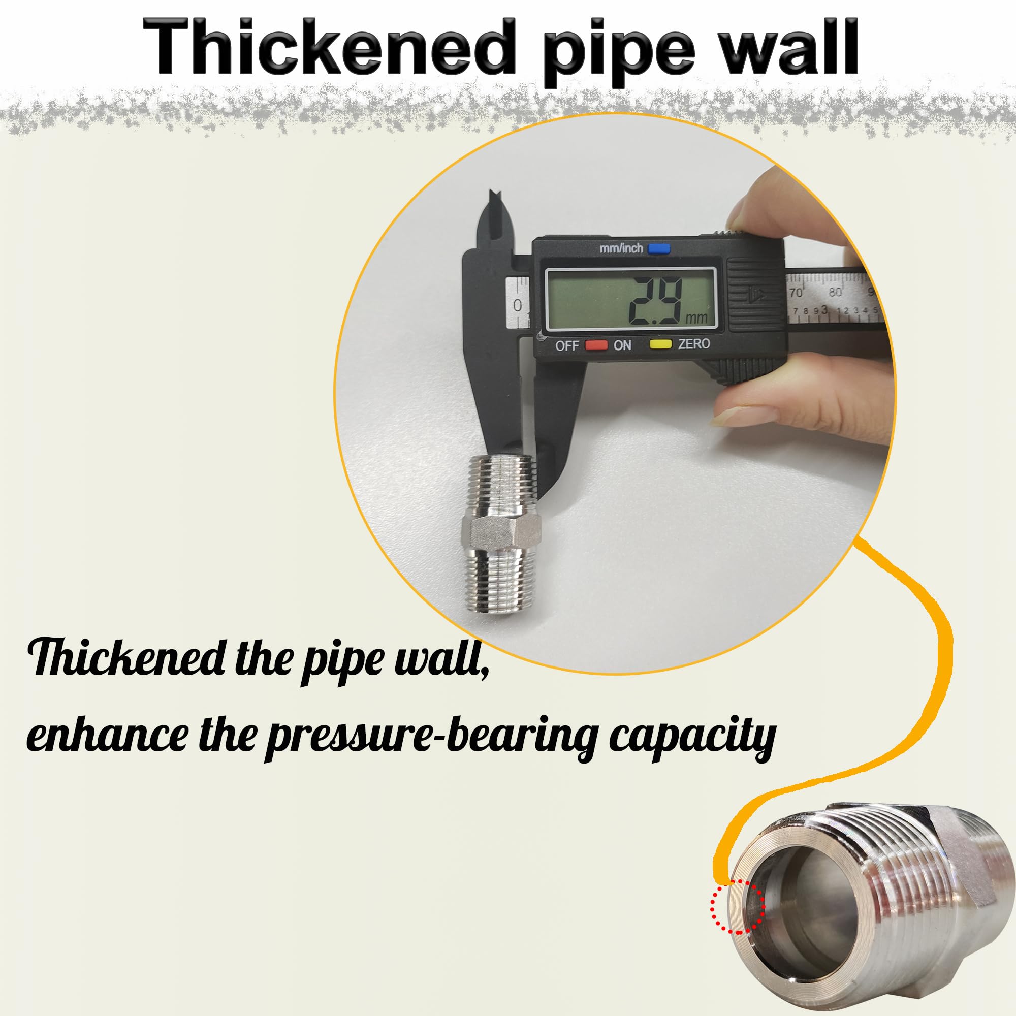 HIGH-QUALITY 304SS: Our hex nipple made of high-quality thickened 304 stainless steel, nickel and chromium elements combined, corrosion resistance, strong oxidation resistance. High abrasion resistance, high corrosion resistance, not easy to rust under humid environment.