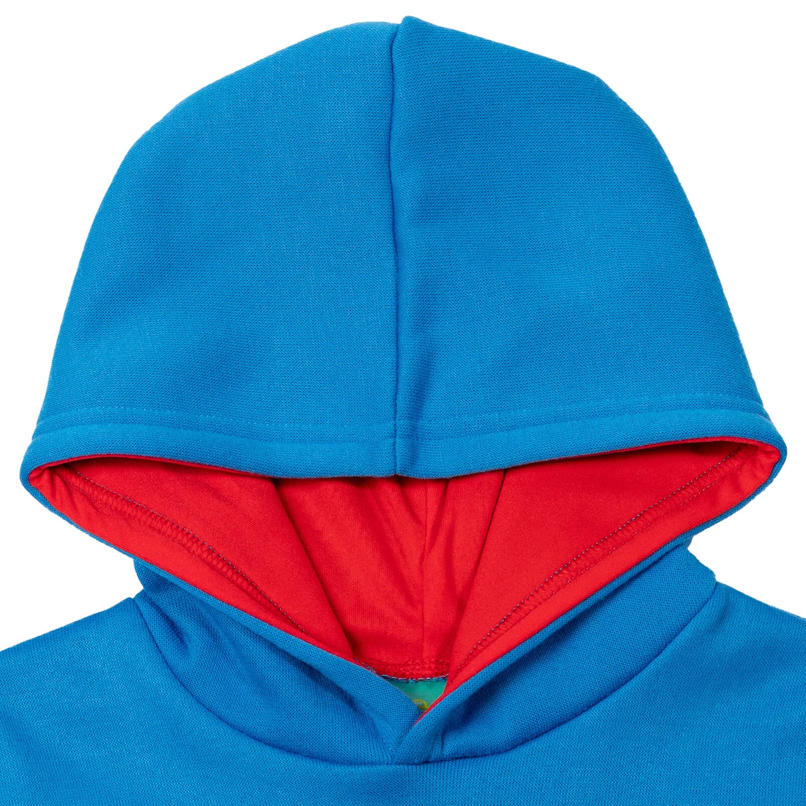 Pull on closure sweater; Comfortable red contrast jersey hood lining; Sleeve cuffs and waistband for a better fit