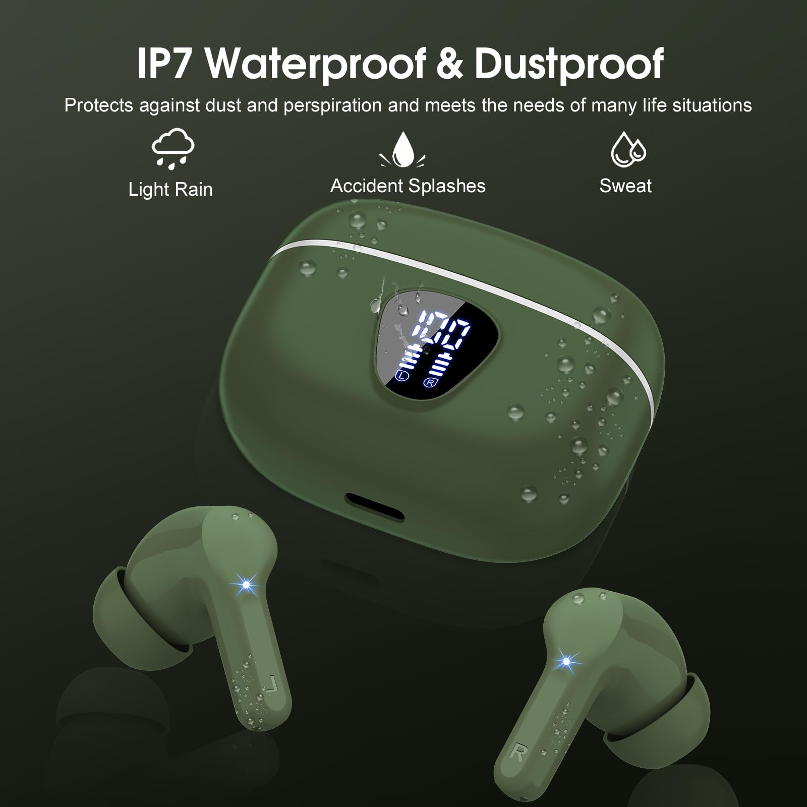 Ergonomic Design and IP7 Waterproof: The bluetooth earphones feature a curved design that fits snugly around the contours of your ears, paired with soft silicone ear bud (S/M/L) for secure and comfortable wearing while running or exercising. Each earbuds weighs only 3.7g, lightweight and burden-free, allowing for long-term wear without stress. With IP7-rated nano-coating technology, the wireless ear bud are effectively sweat-proof and rain-proof, making them ideal for running, cycling, fitness, and travel activities.