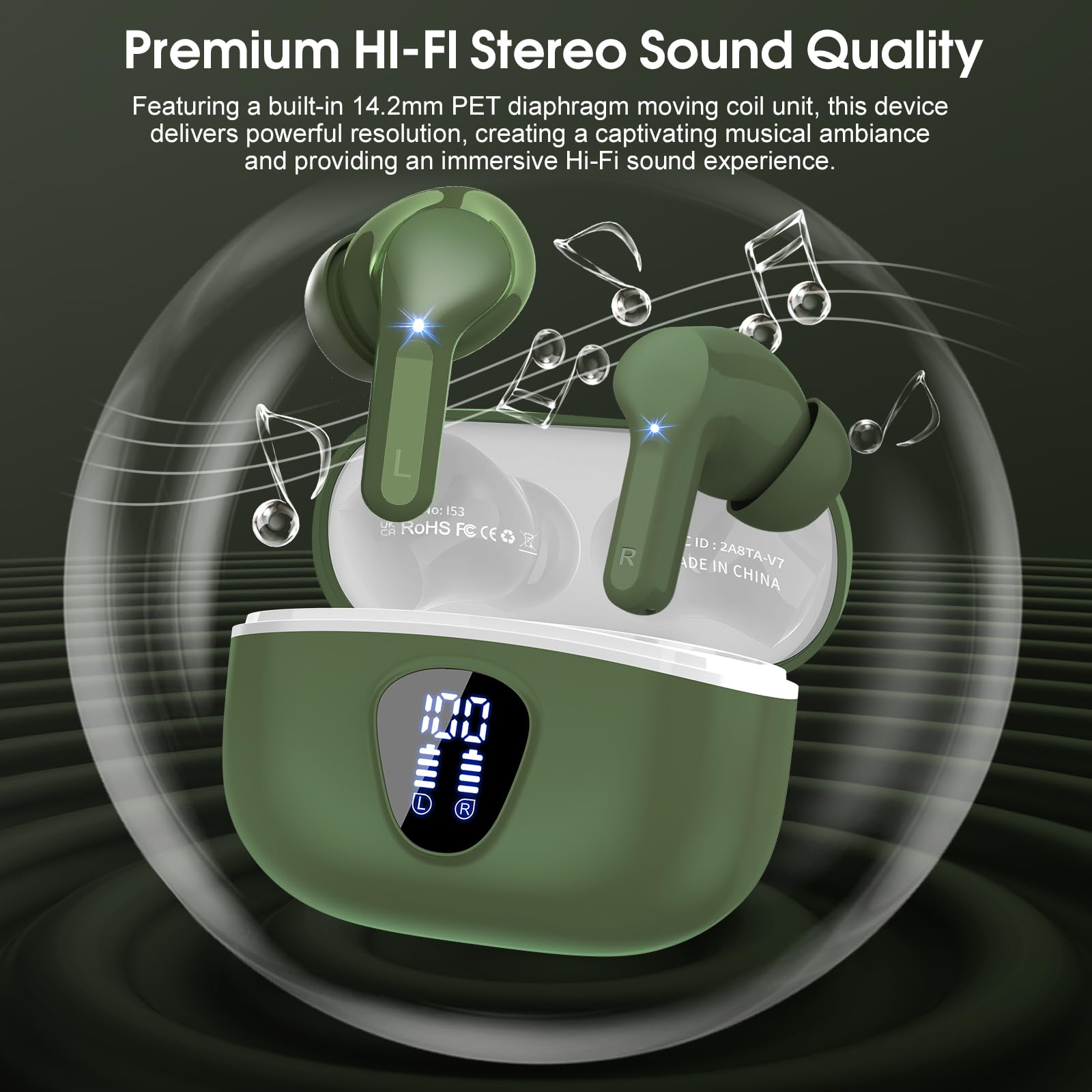 Immersive Stereo Sound: The ear buds wireless bluetooth earbuds adopt high-quality 14.2mm dynamic driver, which can provide amazing low-frequency depth, balanced mid-range and clear highs, and the lossless CD-level audio transmission makes every note and music detail come alive, significantly enhancing your listening experience, Our earphones allow you to enjoy your personal music moments whether you are indoors, outdoors, working or exercising.