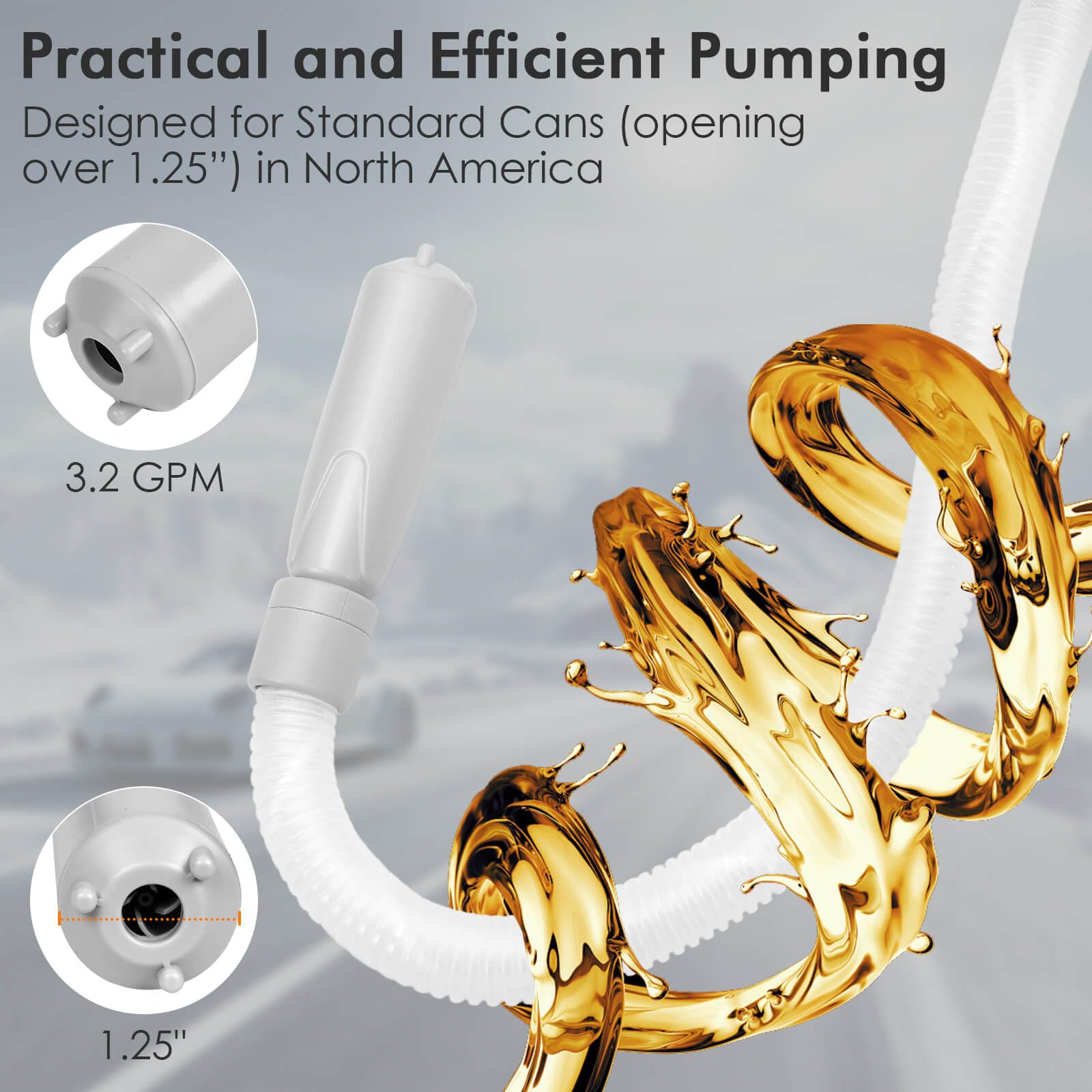 EFFICIENT FUEL TRANSFER PUMP: Transfer gasoline, diesel, kerosene, light oils, and non-potable water at a rate of 3.2 GPM. This gas can pump can move up to 250 gallons on just 4 AA batteries.