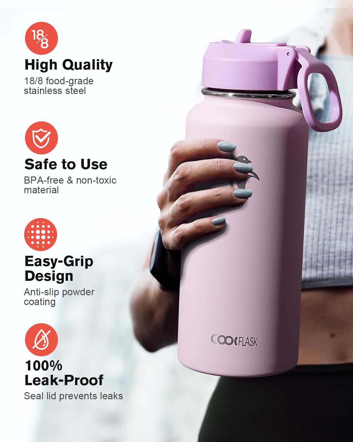 Travel Longer: With 32 oz capacity, the metal water bottle allows you to enjoy your trip easier with fewer refills, perfect for hiking, camping and sport events. It's easy to stay hydrated and refreshed on exciting adventures with such a versatile bottle