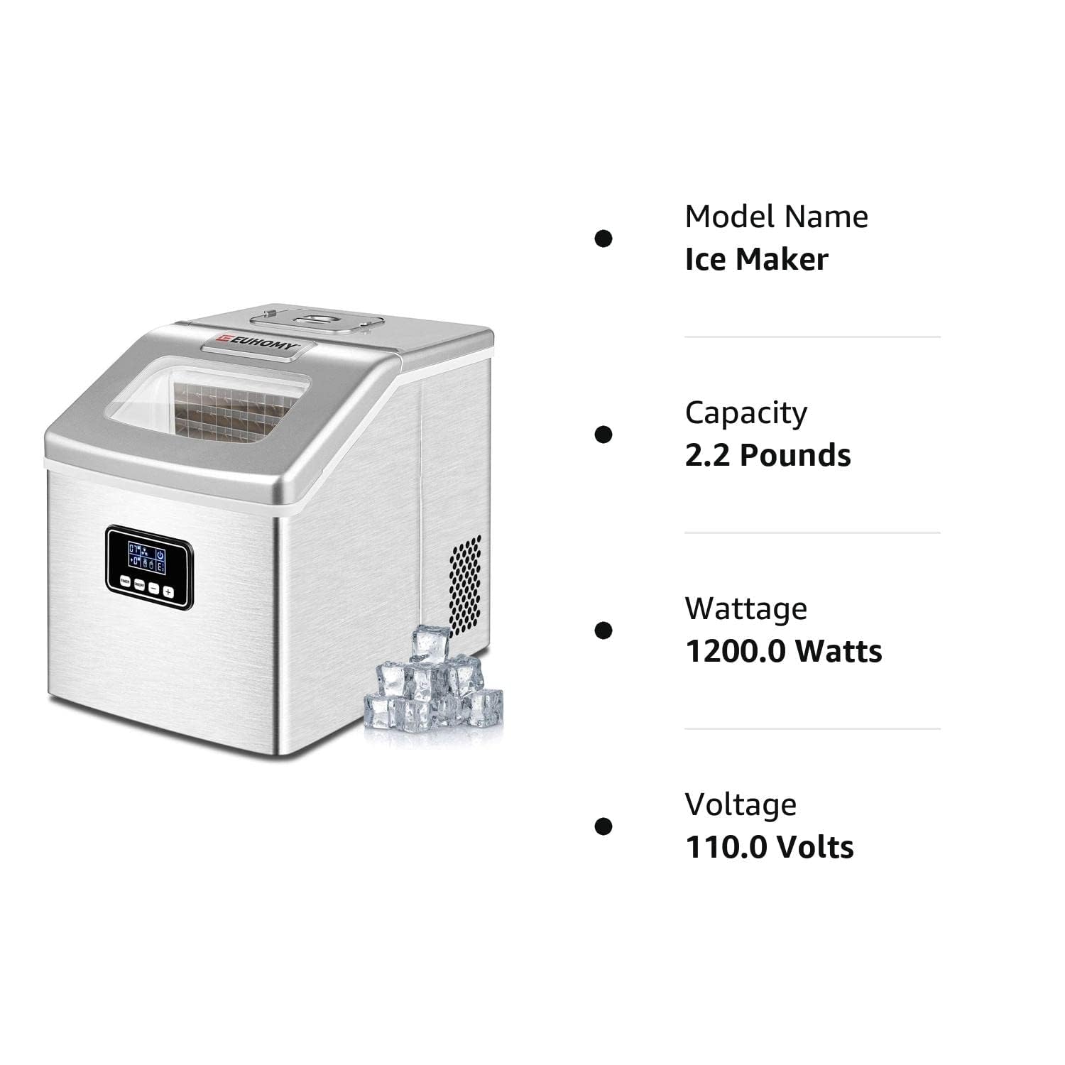 GIVE YOU THE BEST ICE - Euhomy's newly designed nugget-type countertop ice maker machine brings you a brand new ice cube experience. Ice machine countertop can produce about 34lbs of ice per day. You can do it anytime you want. Chewable ice cubes are perfect for Drinks/Food/Seafood/Smoothies.