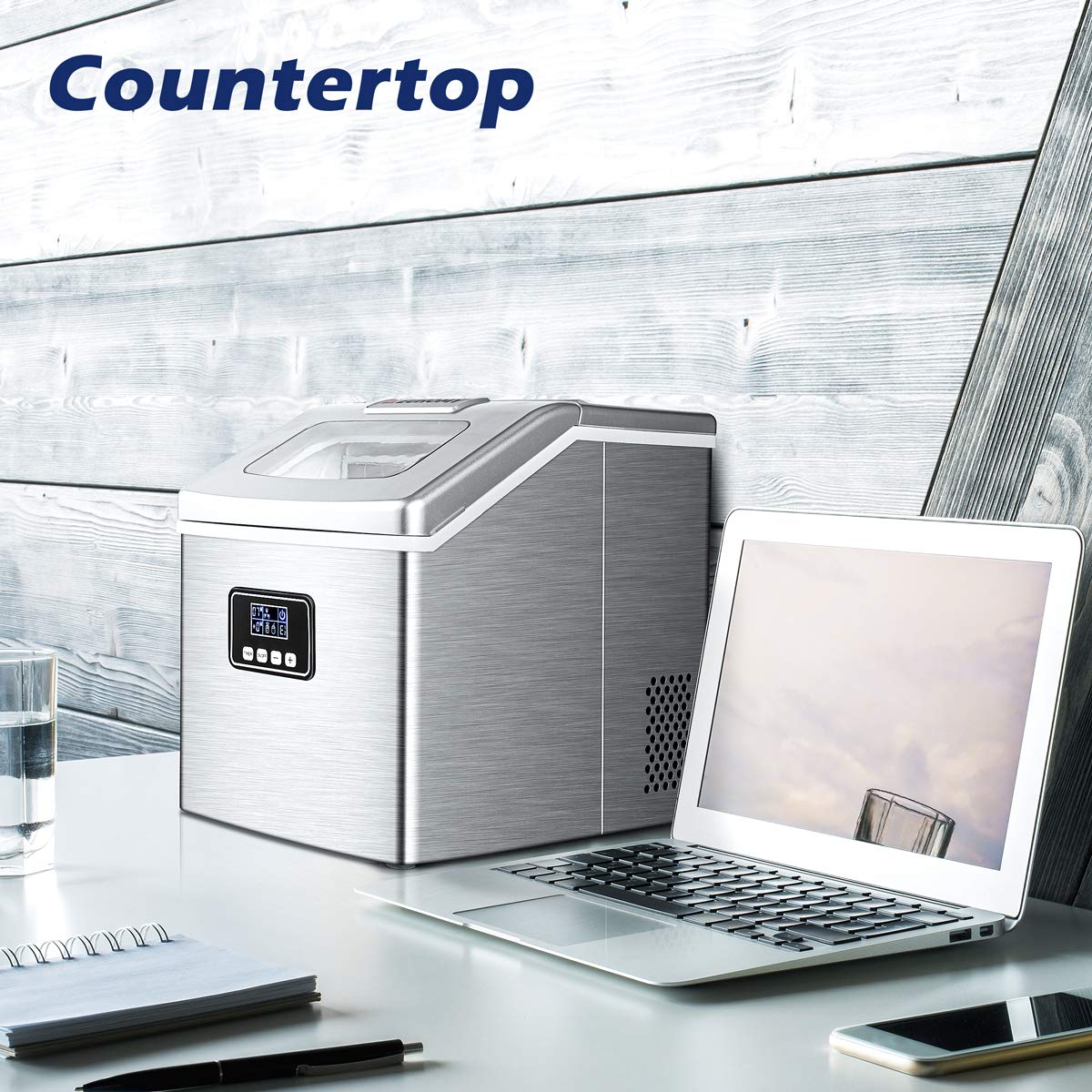 USER-FRIENDLY - Freestanding design stainless steel portable ice maker allows versatile placement. The idea for your home, office, kitchen, bar, or coffee shop. The removable ice basket stores up to 2.2 lbs. of ice at a time, ensuring that you have ice ready whenever you need it, and it comes with an ice scoop to facilitate ice removal. It's easy to clean, use, control and transport. For best results, keep the tabletop ice maker machine upright for at least 24 hours before first using it.