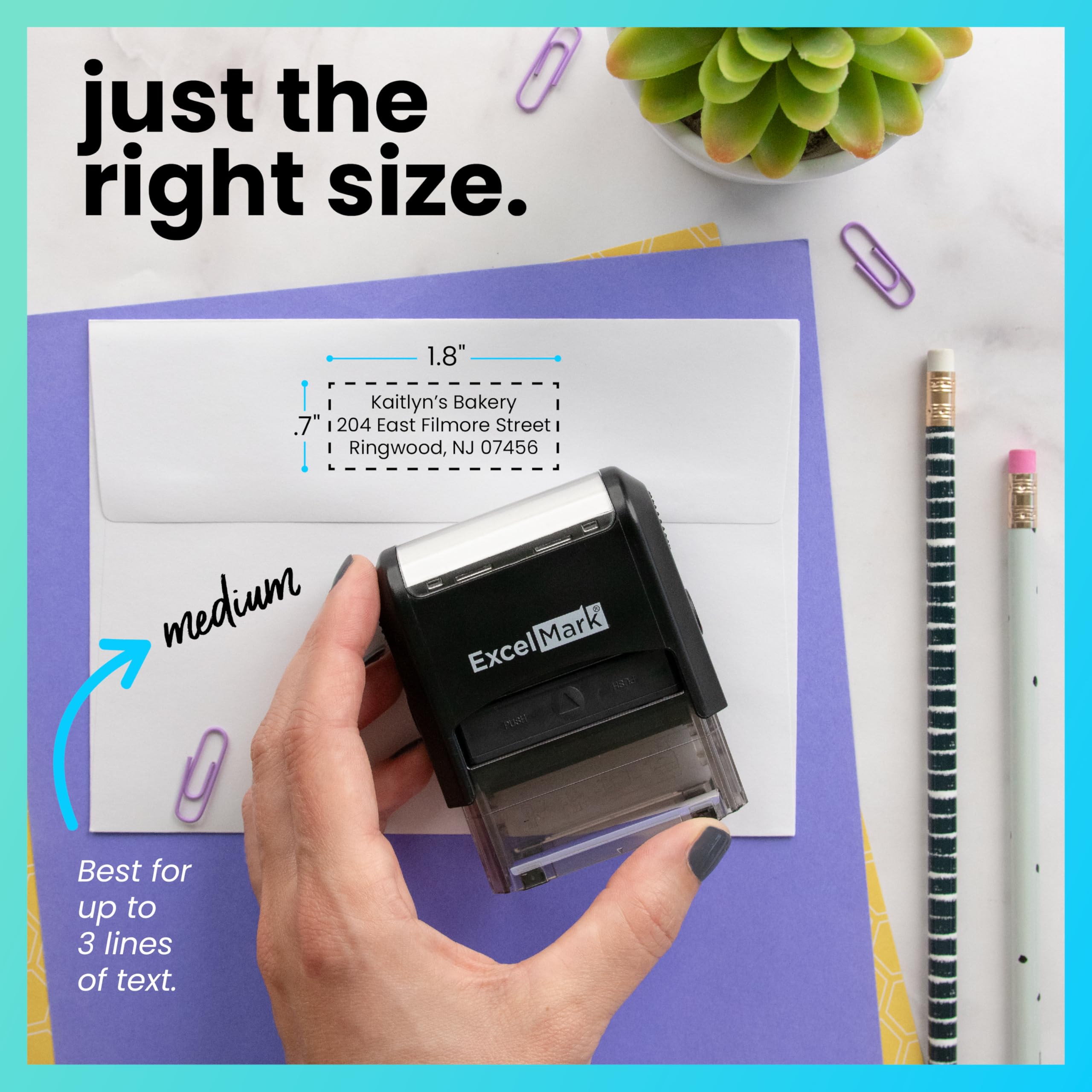CUSTOM STAMP: Personalize up to 4 lines of text within a 0.7” x 1.8” impression area. Whether it’s your return address, contact details, or handy phrases, tailor your stamp to organize documents effortlessly.