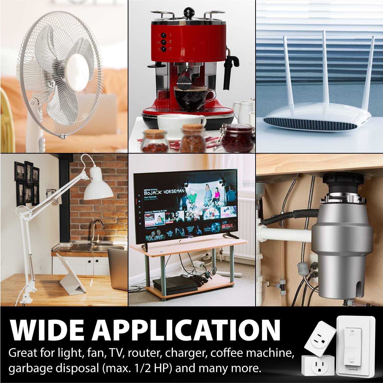 [SAFE FOR MULTIPLE USES] The safety and quality of the wireless remote plug is ETL certified, and the 3-prong grounded outlet provides an extra protection. The wireless plug is rated 125V/15A 1875W general purpose, 1250W Tungsten, and ½ HP. It is compatible with LED, CFL, and incandescent.