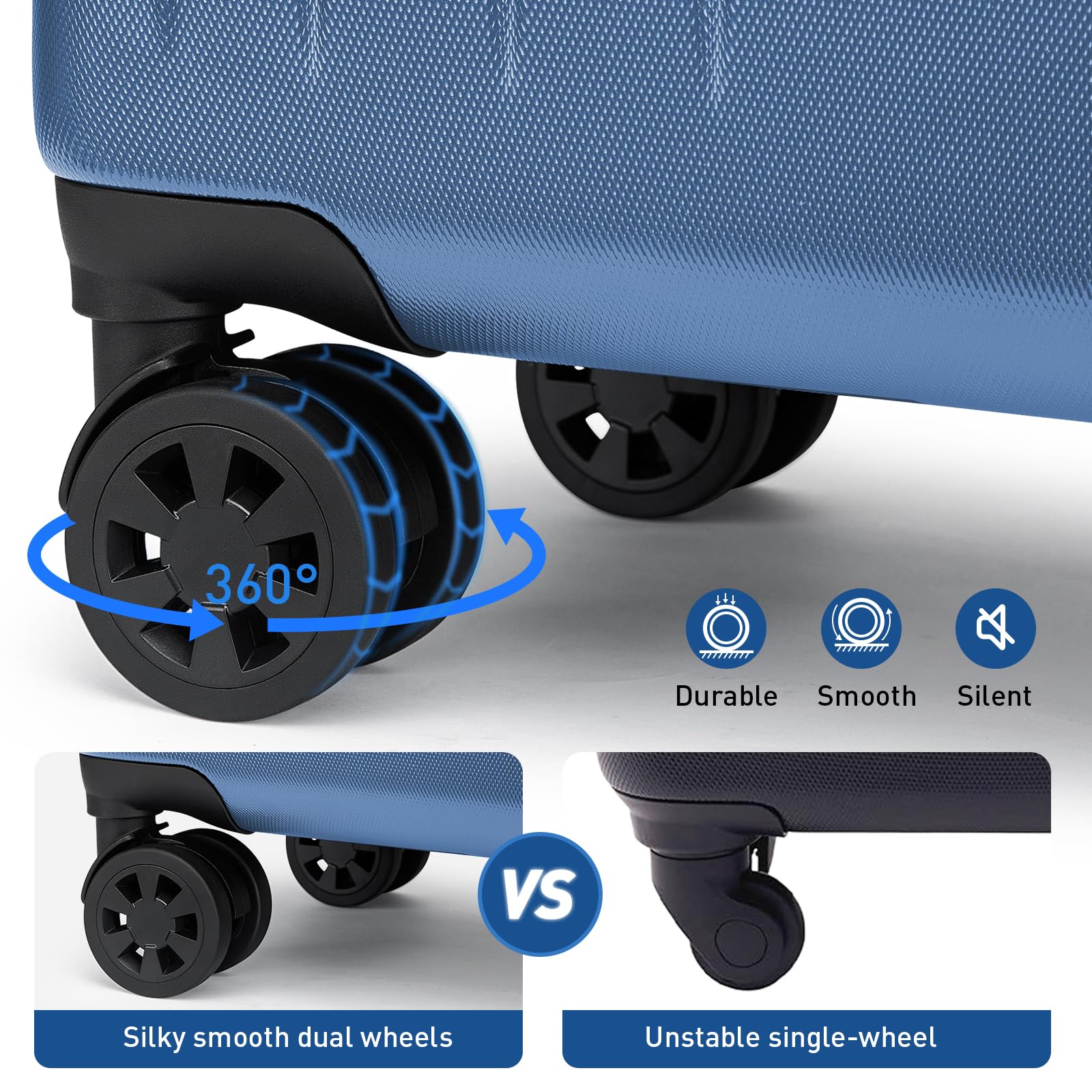 2 Pieces Luggage Sets Includes:20" carry on(21.7 x 13.8 x 9.8 inches) and 24" spinner suitcase(26.7 x 16.7 x 10.6 inches).Carry-on luggage suitable for short trips and 24" checked luggage maximize your packing power and the ideal checked bags for longer trips