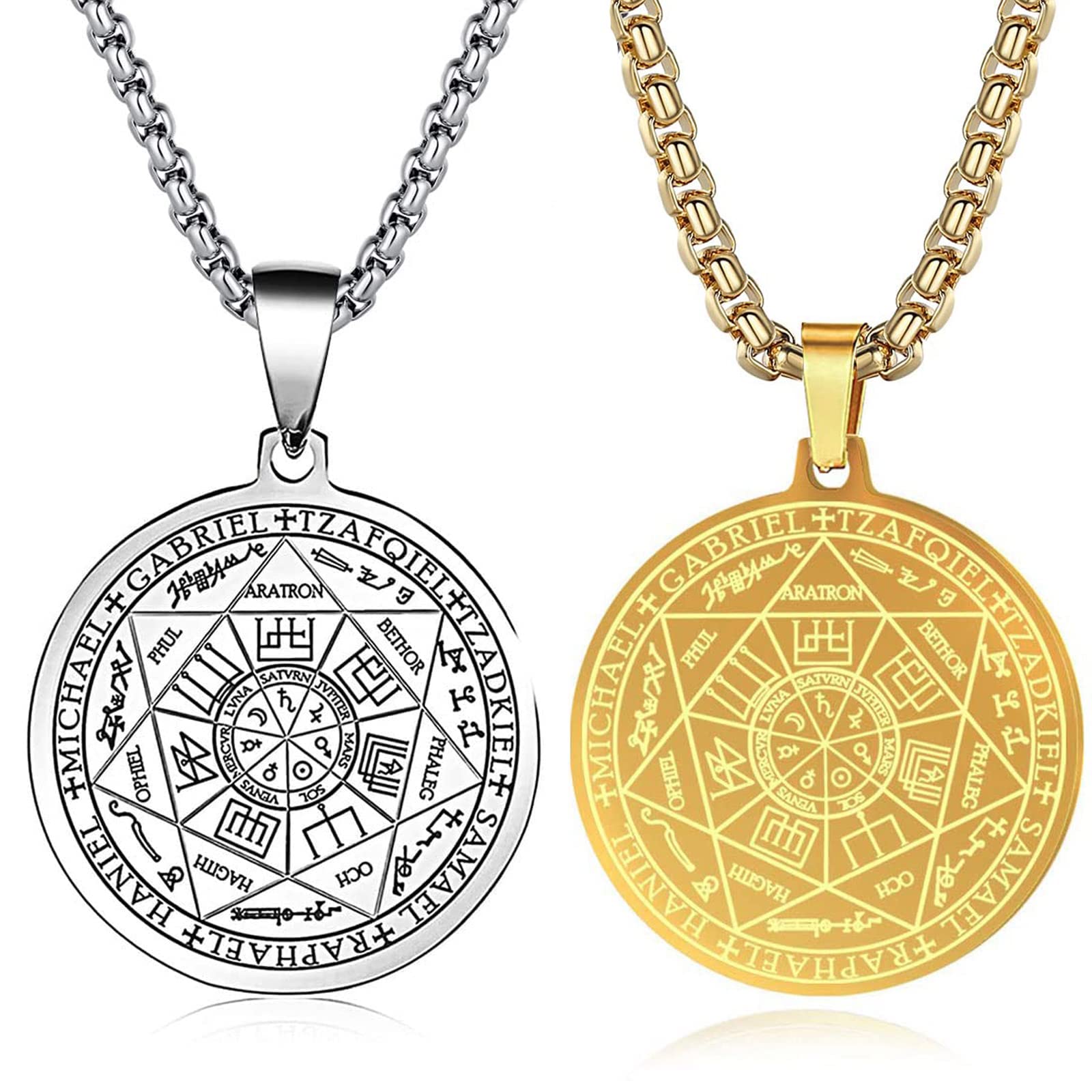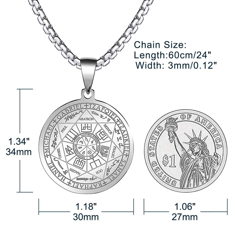 【Product Dimension】Seals of The Seven Archangels Pendant Length: 3.4cm(1.34 inch),Pendant Width: 3cm(1.18 inch). Chain Width: 0.3 cm(0.12inch), Chain Length:60 cm(24 inches).