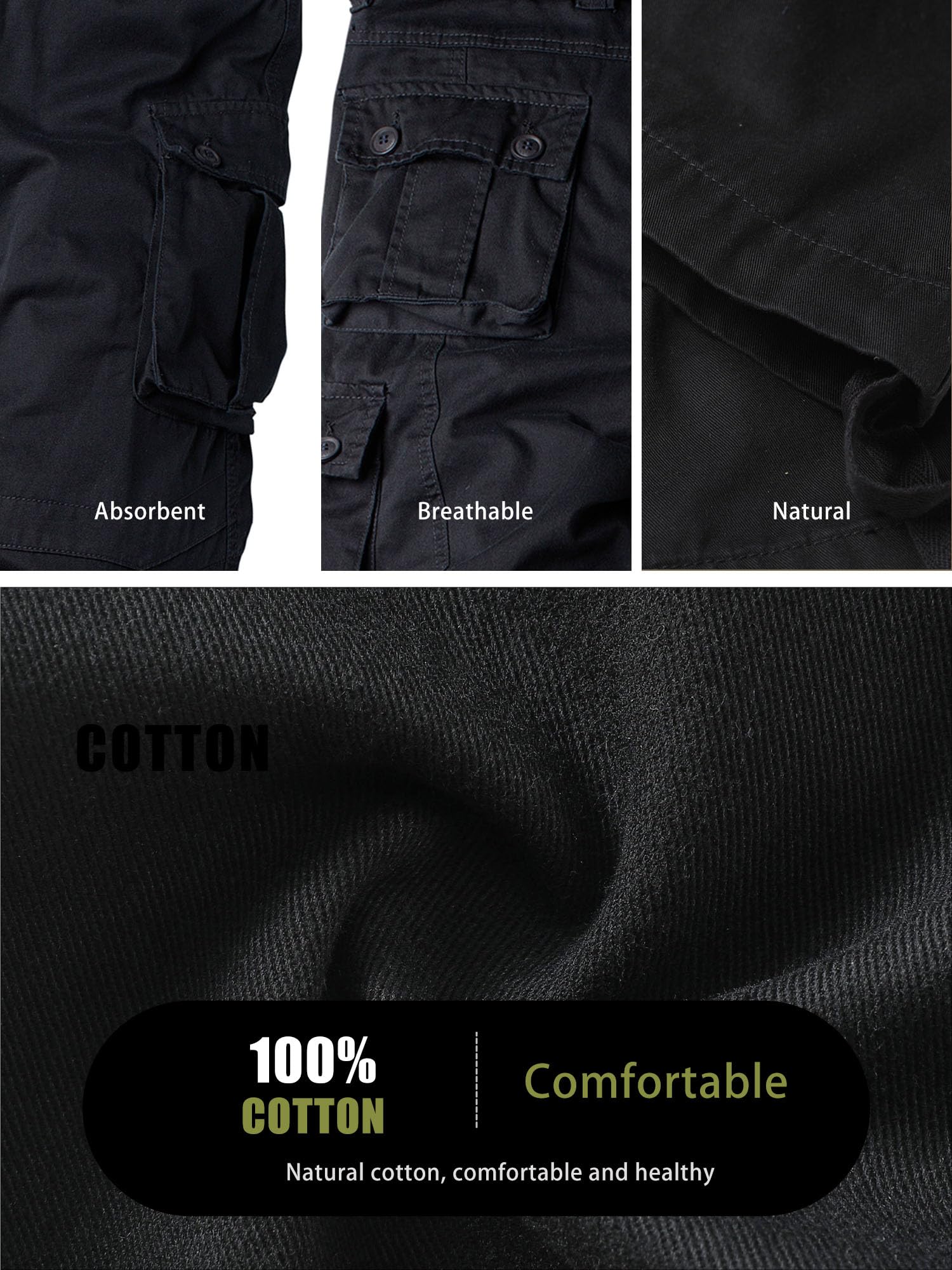 Product Design:Classic cargo pants with 8 pockets, all three-dimensional design with hand pockets x2,extra buttoned flap pockets x2 , side fast opened large pocket x2,rear pockets x2, makes it easier to carry additional personal things,Designed with a relaxed fit through the seat and thigh, these men's casual wear will keep you comfortable during any task.It is made of easy care wrinkle resistant fabrics, roomy pockets & sturdy zippers & buttons.