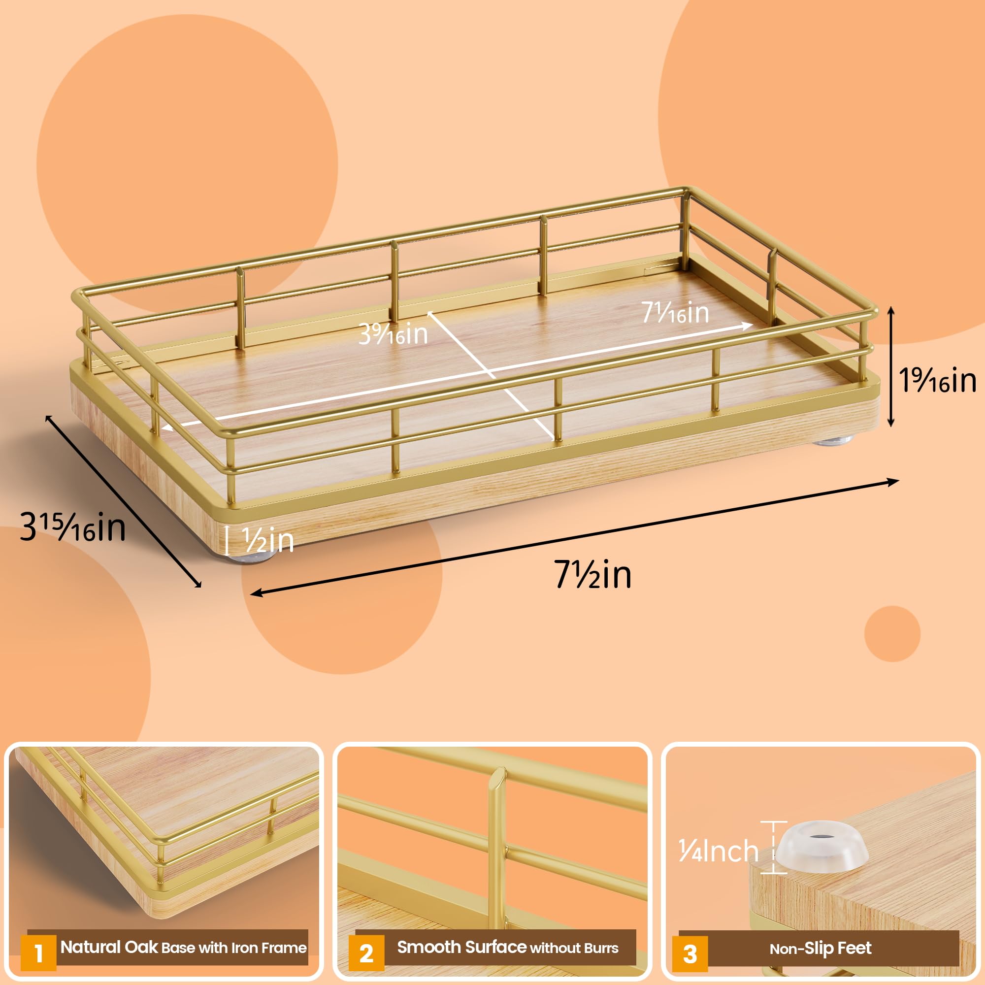 Versatile Functionality: Elevate your daily routine with our tray for bathroom counter; Neatly arrange bathroom essentials like mouthwash with cups, toothbrushes, cotton swab, keeping your countertop tidy; Add a touch of elegance to your dresser by using the vanity tray to showcase perfumes, jewelry, and candles; The small tray can also be used to store keys, watches and change at the entrance