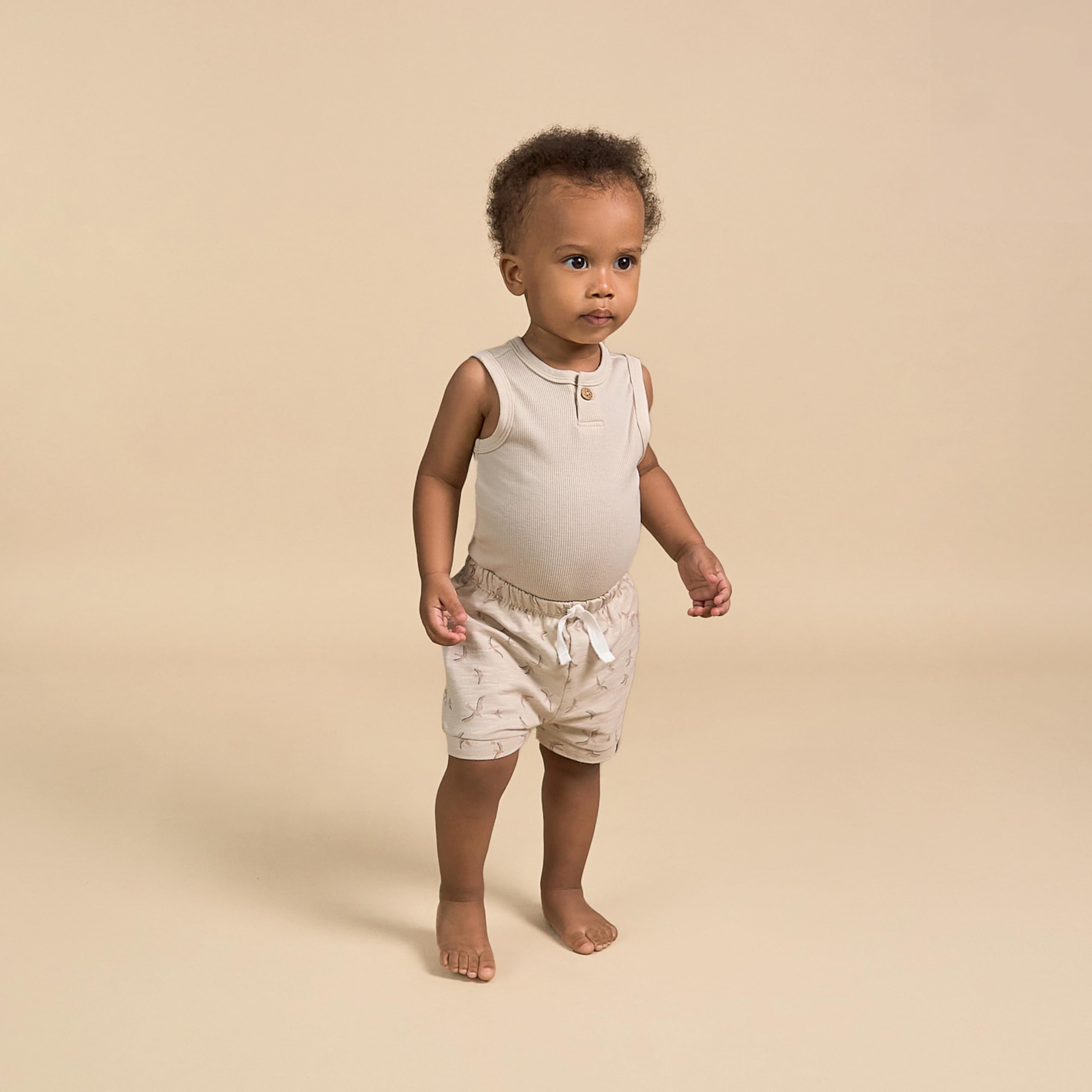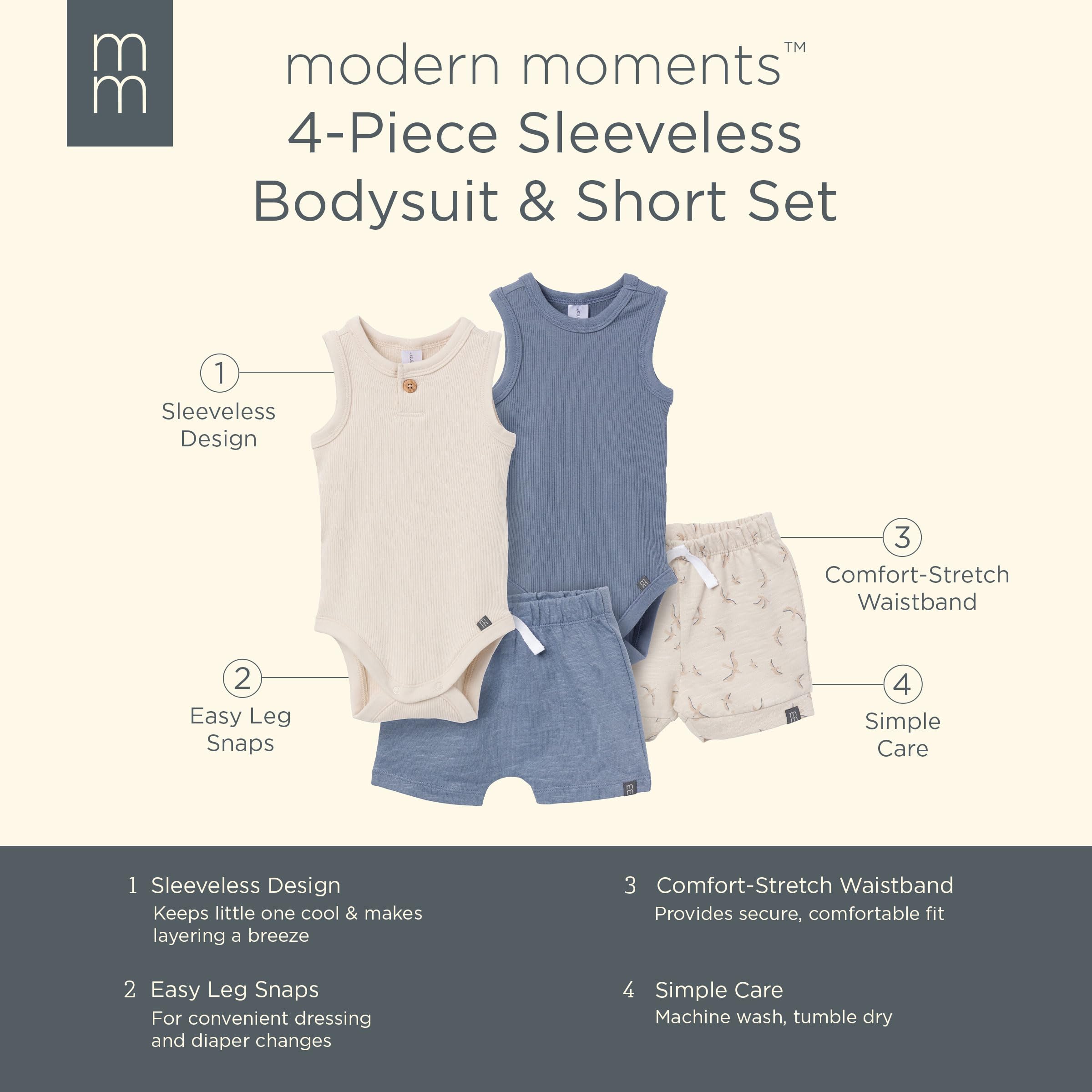 Description Get ready for fun in the sun with our baby bodysuit and shorts set! Designed for both style and comfort, this ensemble allows you to mix and match to create adorable sunny day outfits for your little one. The ribbed bodysuits offer an extra flexible fit, while the comfort-stretch material at the neckline, armholes, leg holes, and shorts waistband provides your baby with a flexible fit, keeping them free to move and play. With simple bodysuit snaps, dressing and diaper changes are quick and easy, allowing you to spend more time enjoying the outdoors with your little one. Add a touch of sunshine to your baby's wardrobe with this versatile baby outfit set.