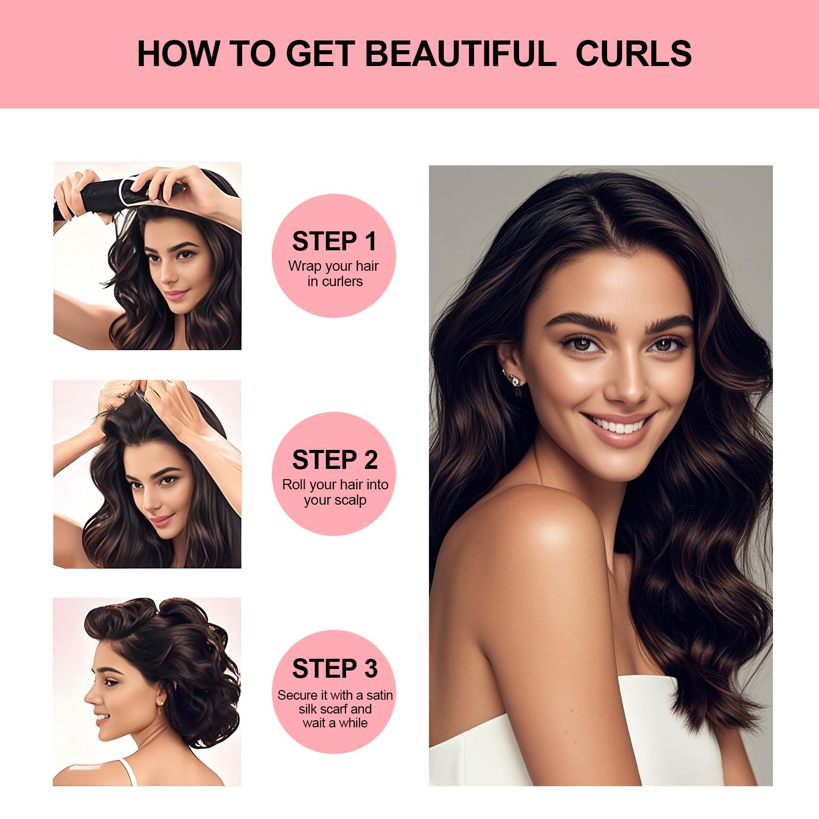 Sleep Friendly Curling Rod: These heart-shaped curlers feature upgraded hook-and-lock technology, ensures stay firmly in place while you sleep. The pillowy velvet surface prevents hair from snagging and provides maximum comfort for side/back sleepers