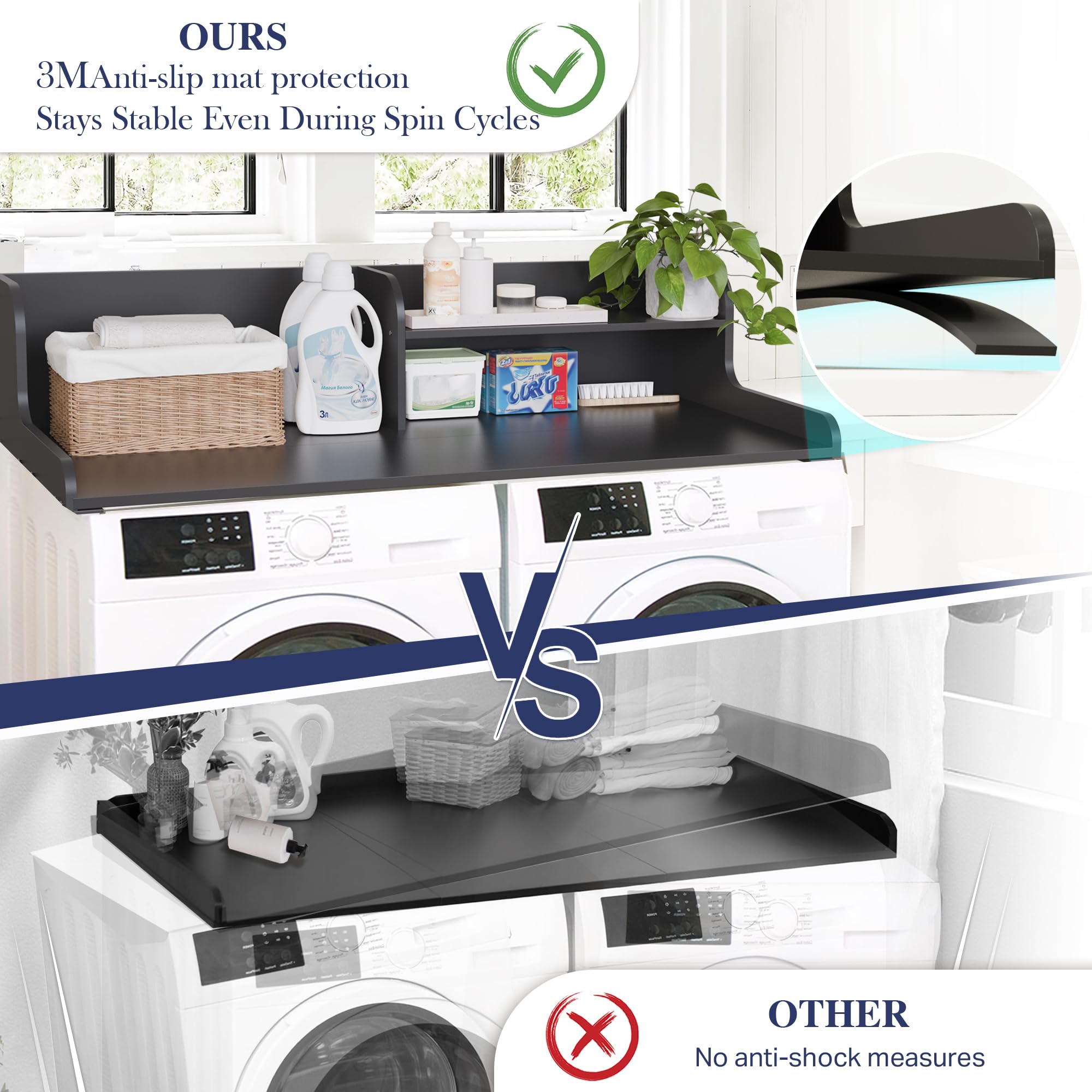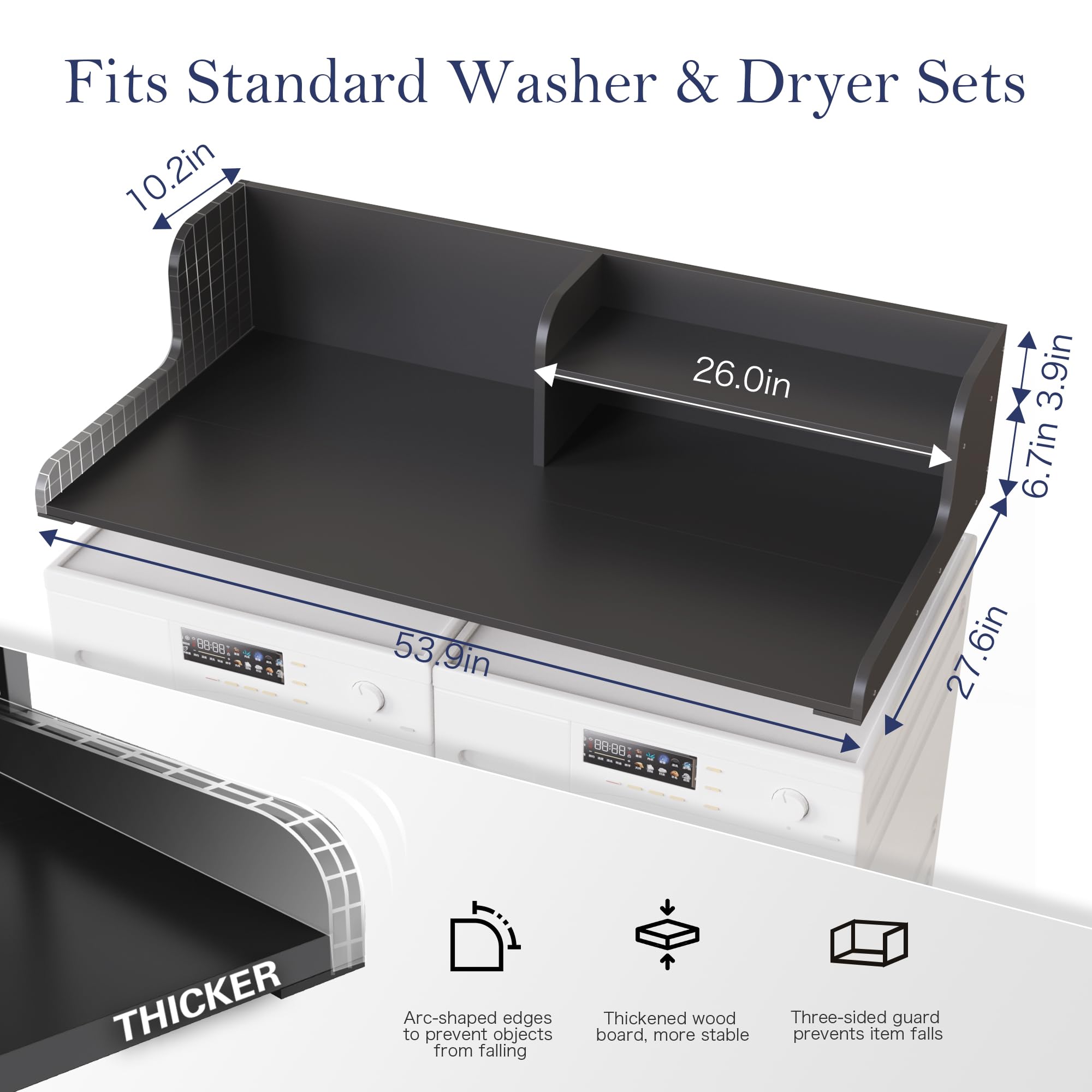 SPACIOUS AND FUNCTIONAL: Our washer and dryer covers for the top measures 54 inches wide and 27.6 inches deep, offering spacious working area for all your laundry needs including folding clothes, sorting laundry, organizing laundry supplies. Our washer dryer wood countertop has 2.4-inch high edge rail above to prevents items from falling off. Our laundry topper could provide a hassle-free washing and drying experience.