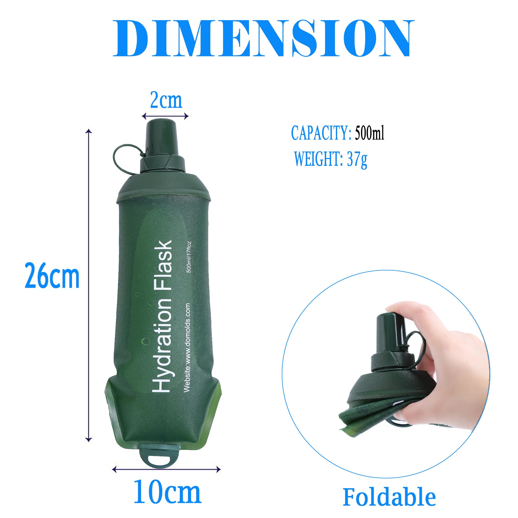 Foldable running water bottle is easy to carry whenever empty or full. It is ideal for hydration running vest and hydration waist belt. Soft flask can be used by adults and children, men and women