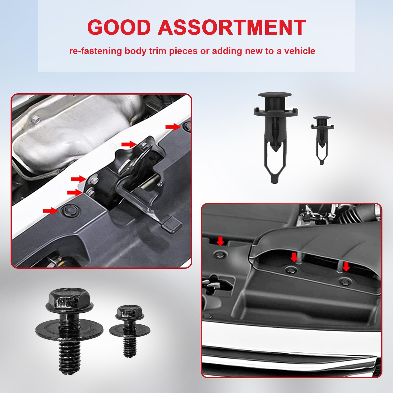 【Wide Application】: These car bumper clips are universally suitable for almost all cars. It can also be used for trim panel, door trim panel, door panel, bumper, fender, bonnet, and splash guard retainers replacement. And It also can work on some applications like motor vehicles, furniture, and electronic equipment.