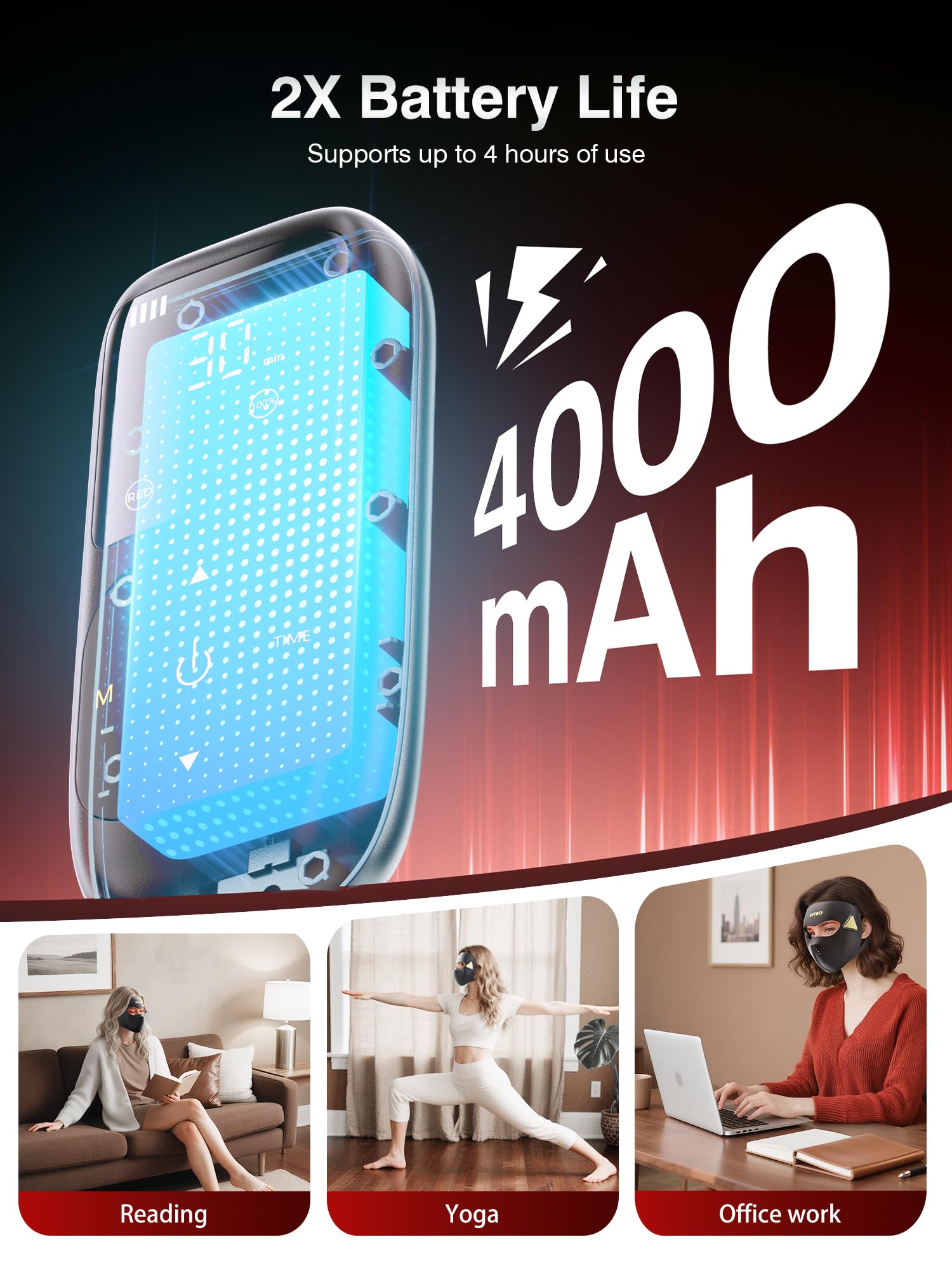 【4000mAh Large-Capacity Battery, Double Battery Life】 The built-in 4000mAh large-capacity battery provides industry-leading double the battery life. A single charge can meet the needs of multiple intensive red light therapy or long-term daily use, eliminating the worry of frequent charging and allowing you to enjoy light therapy anytime, anywhere.