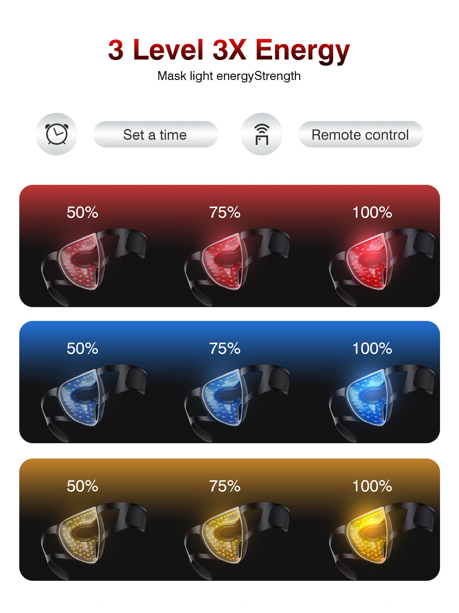 【Smart Control, Clear at a Glance】Equipped with a smart remote control with a display, you can easily adjust the light mode, three brightness levels (50%/75%/100%), and a timer function (10/15/20/25/30 minutes) without removing the mask. The clear working status display provides a convenient and advanced user experience. You can fine-tune your settings to suit your individual needs.