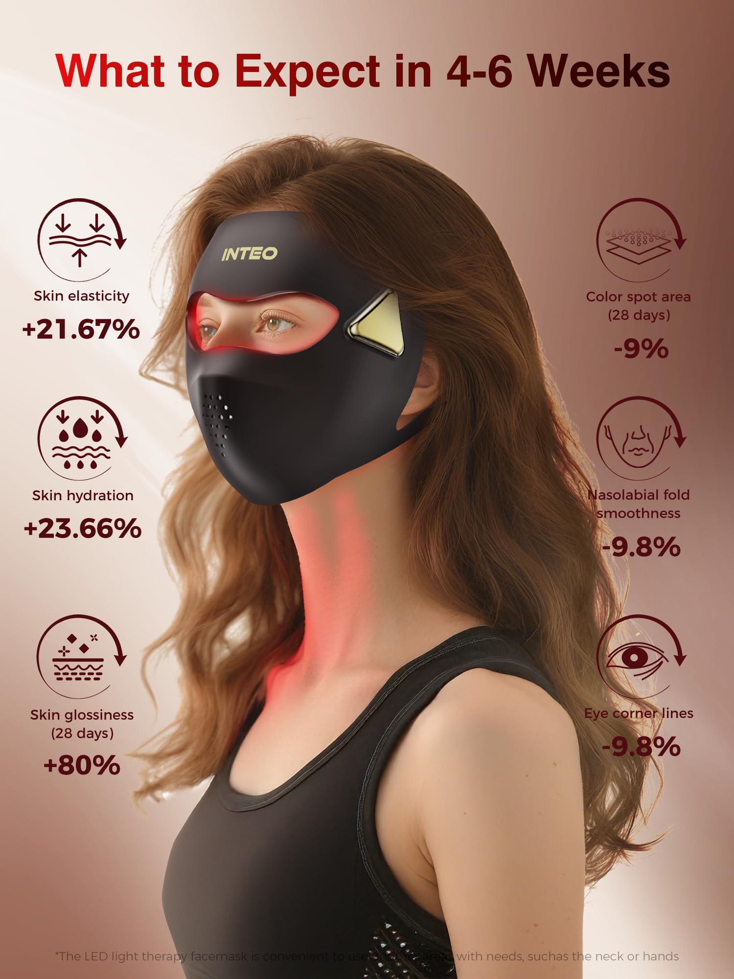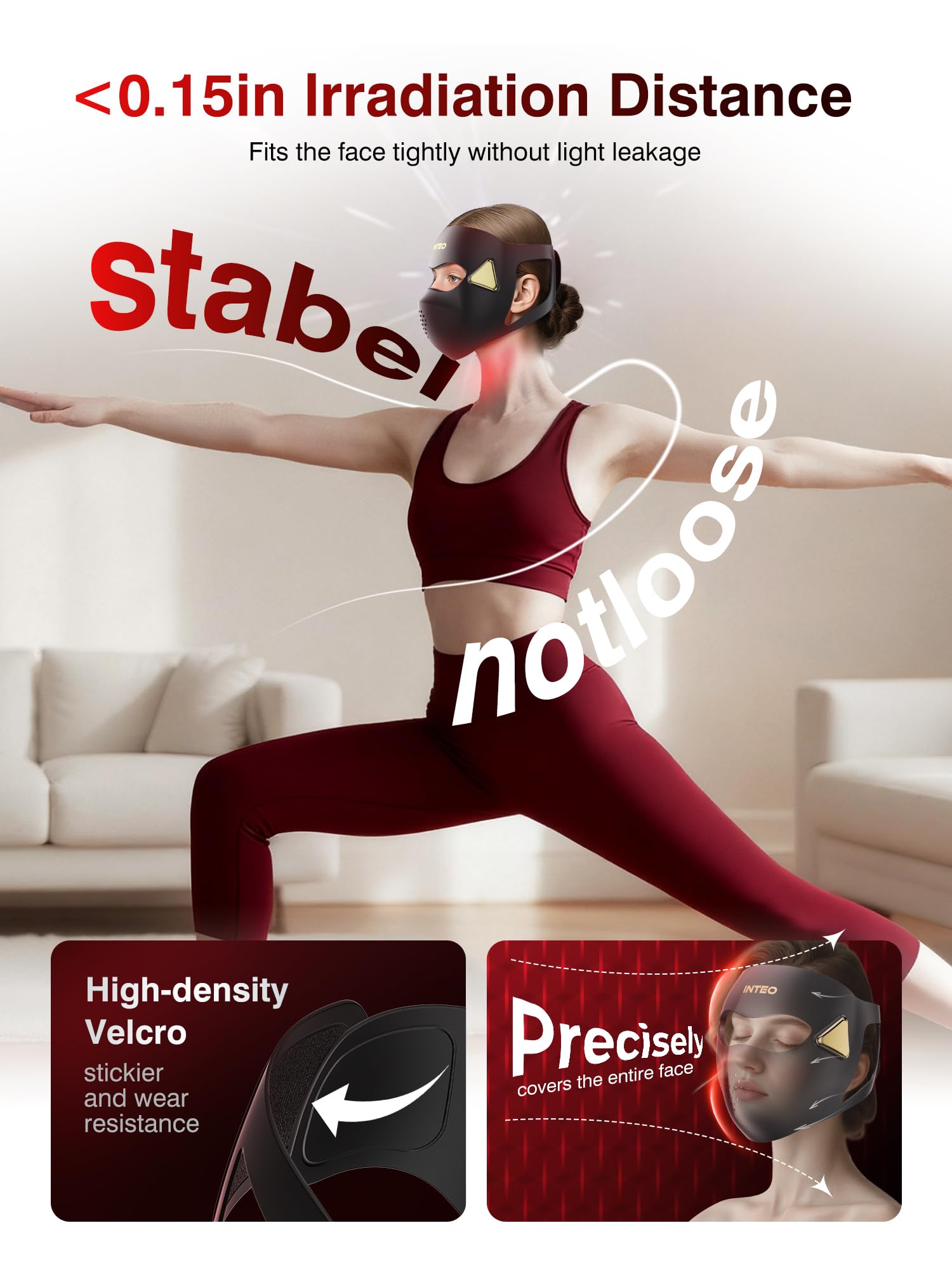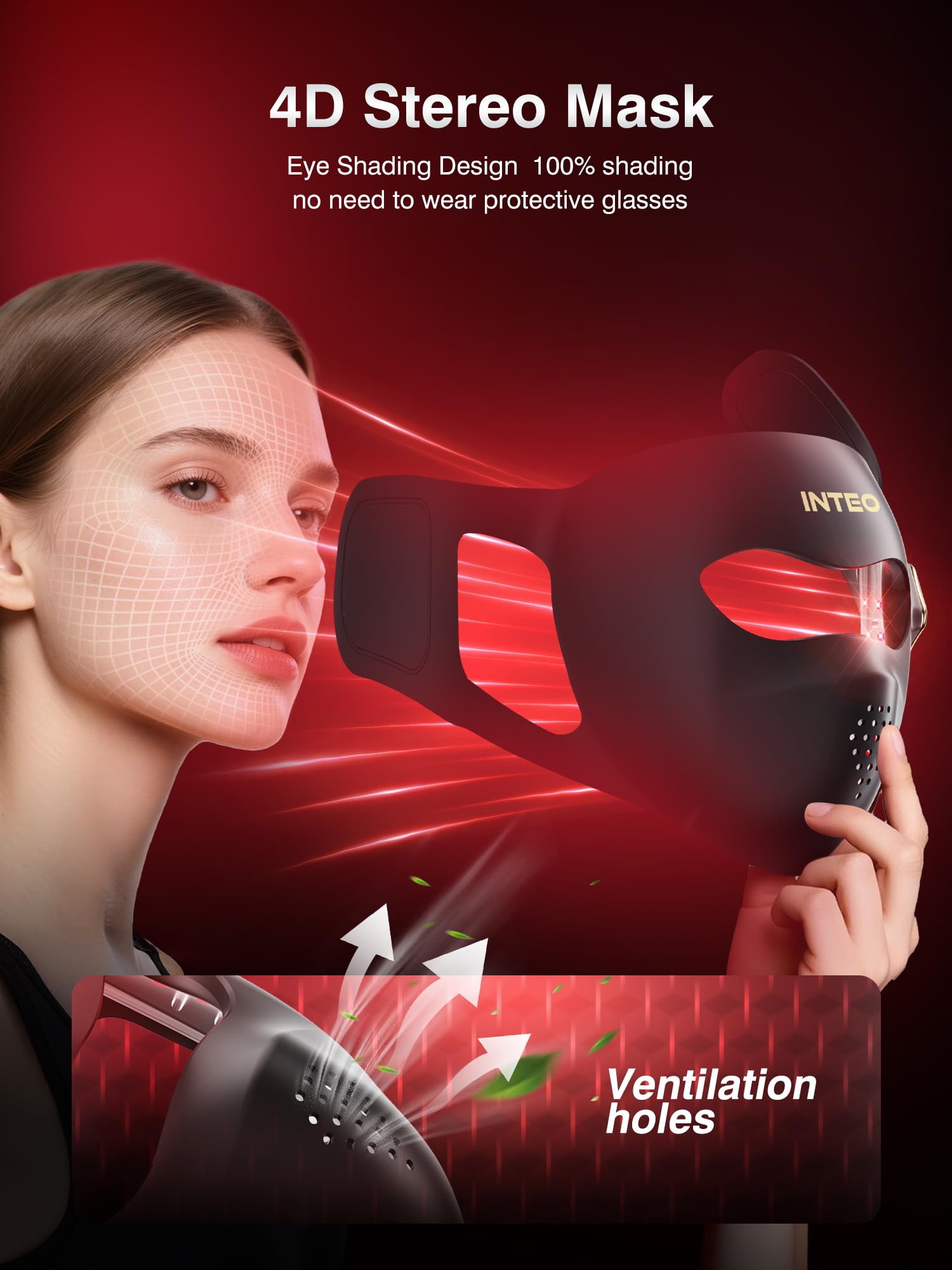 【4D Fit, Breathable Led Face Mask】We've redefined comfort! The 4D curved design of the led mask is ergonomically designed to perfectly adapt to various facial contours, ensuring even light coverage. Design with ventilation holes significantly enhances air circulation of red light mask, ensuring a comfortable wear even for extended periods.The specially designed built-in soft eye protection pad gently hugs the eye area, blocking glare, allowing you enjoy your red light therapy with peace of mind.