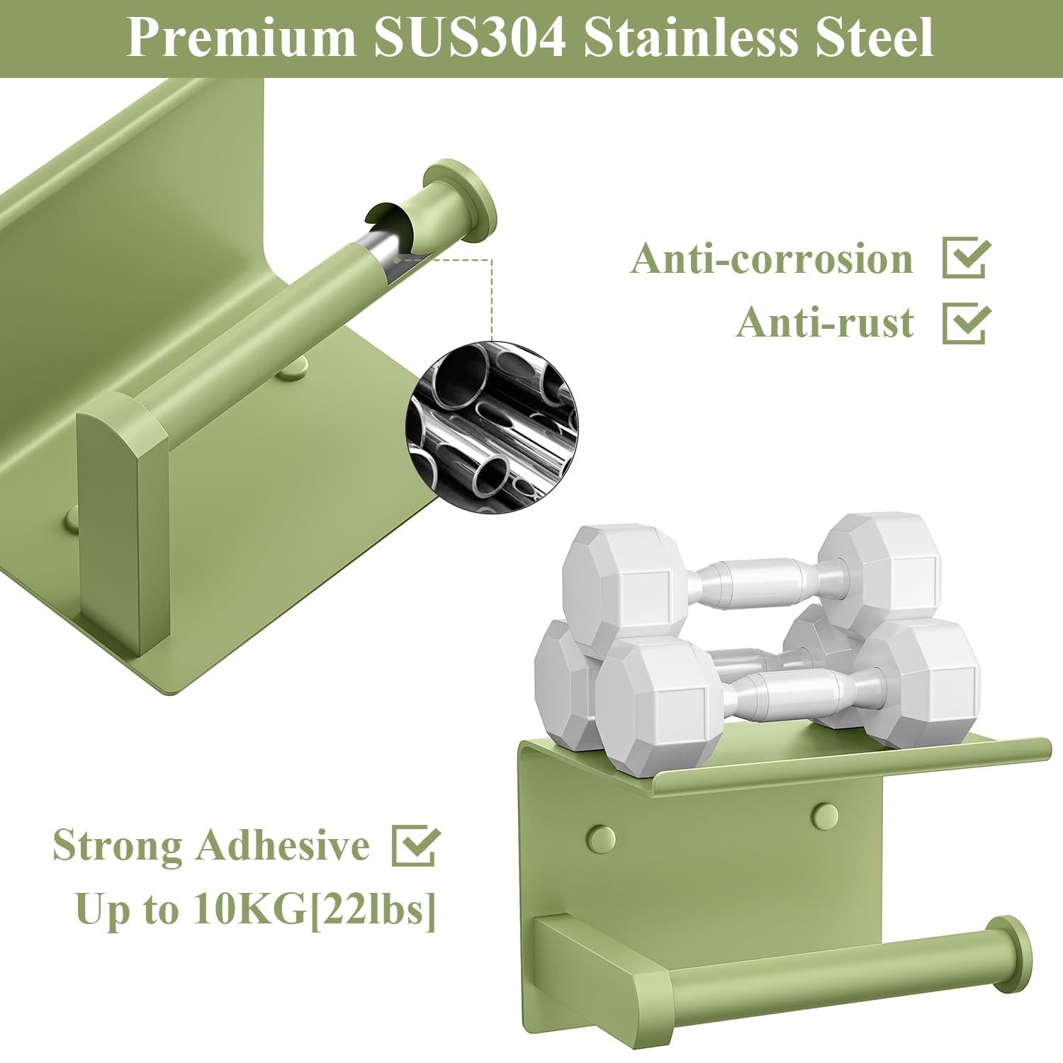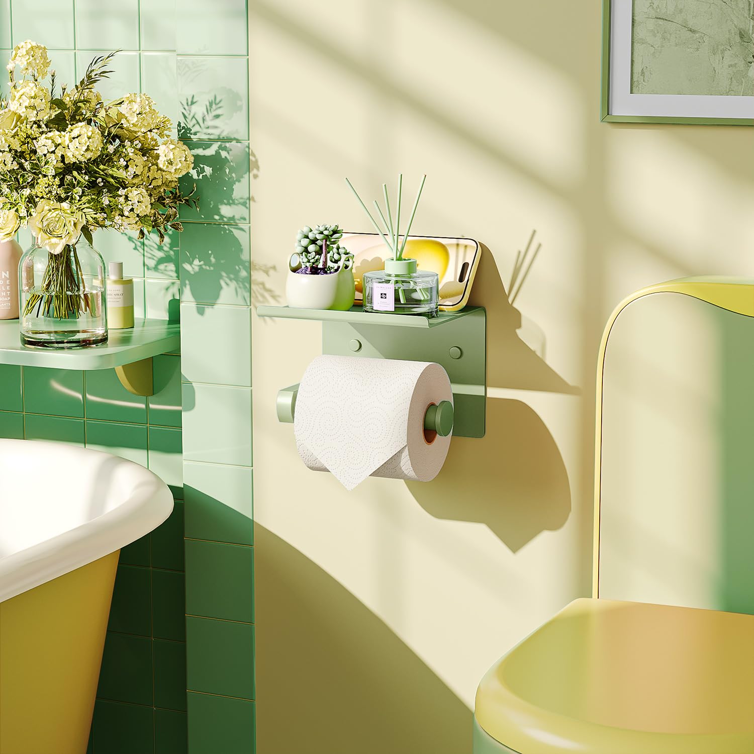 MODERN & STYLISH DESIGN: Soft Sage Green painted, waterproof, rust-proof and corrosion resistant, bathroom toilet paper holder fits a variety of home decor style, add modern home atmosphere and save your efforts from organizing bathroom and kitchen. Standard process builds delicate finish that is beautiful and long lasting.