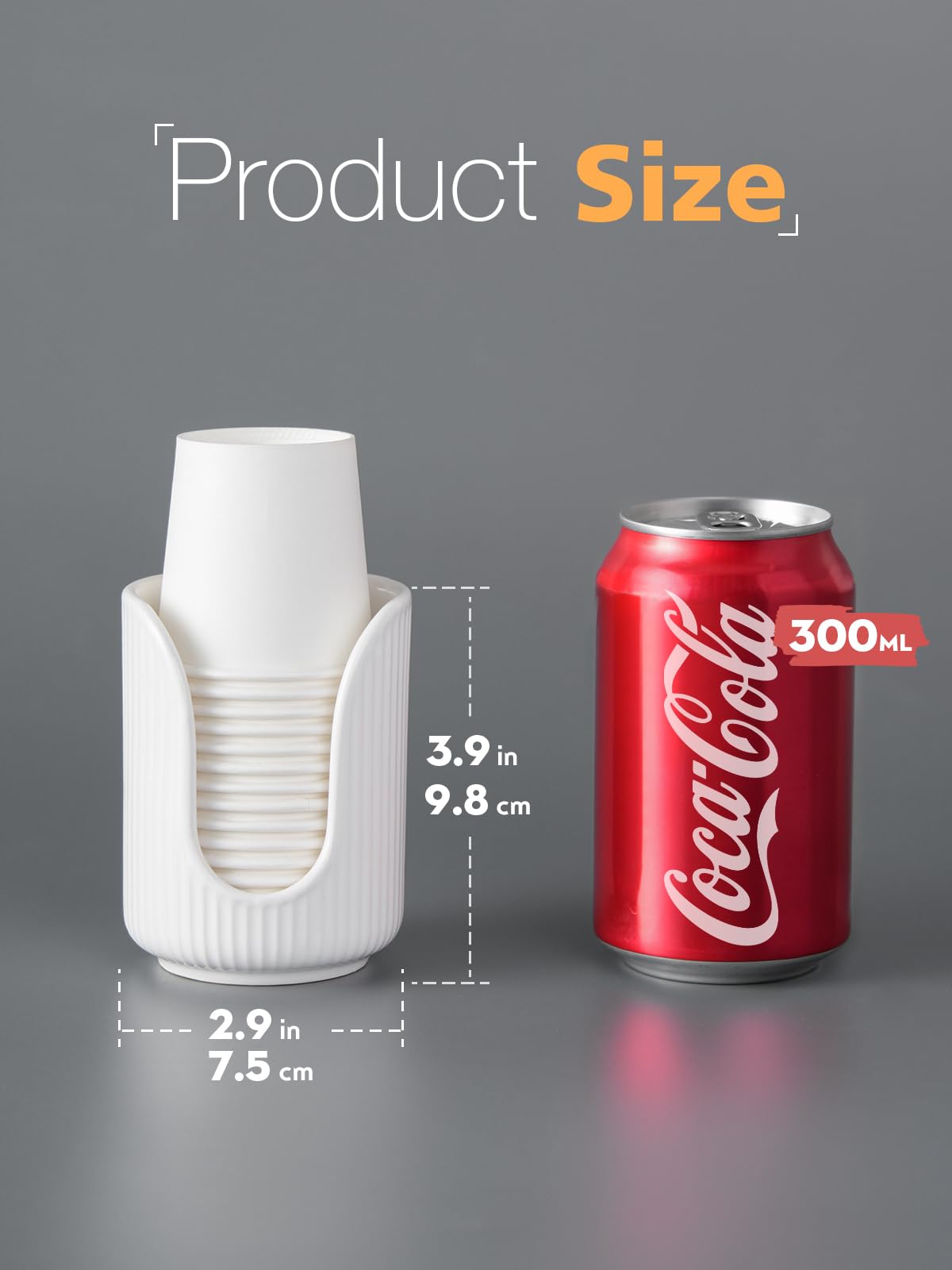 FITS 3-4 OZ CUPS: With a compact size of only 4.57*3.74 inches, this dixie cup holder fits 3-4 ounce disposable paper cups and can hold up to 35 cups. Please make sure to measure your cups before purchase to ensure the fit. (Note: The product does not include paper cups.