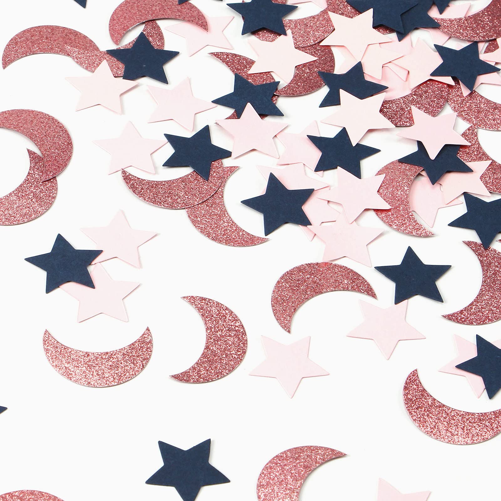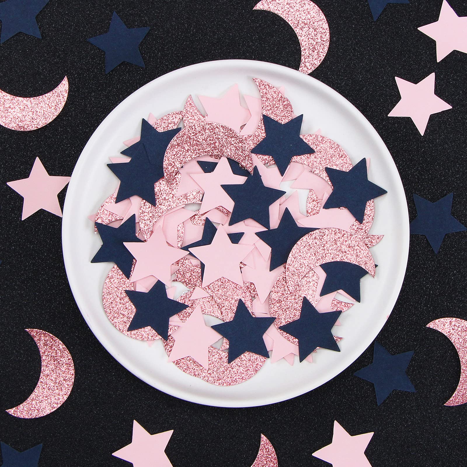 The Ramadan Mubarak confetti includes 300pcs moon and stars. The star size is 1.2β the moon size is 1.57β which is more thick and bigger than plastic confetti. So itβs much easier to clean up.