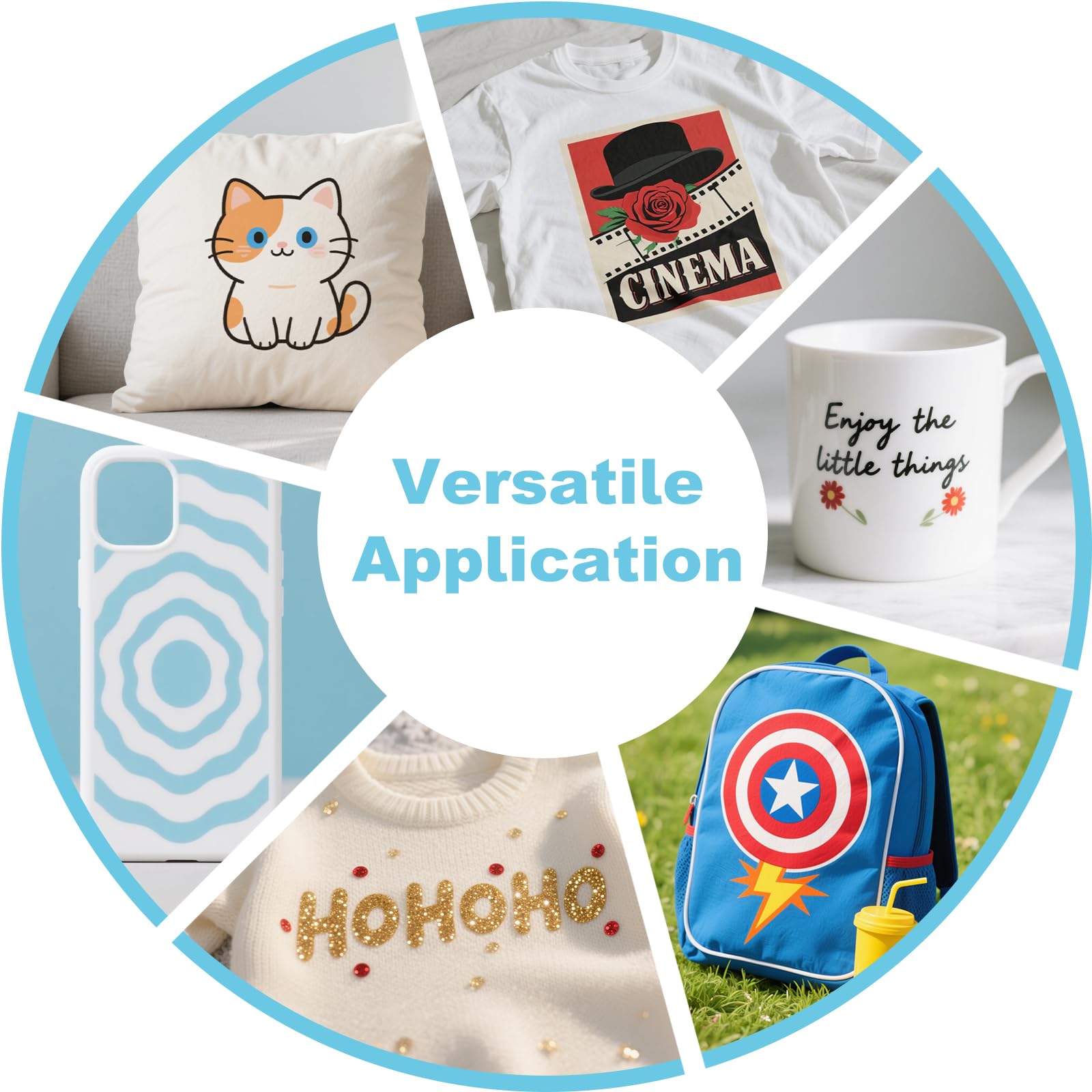 UNIQUE PRINTABLE LIGHT&DARK FABRIC TRANSFER PAPER: The printable transfer paper makes creation more convenient,which is not only suitable for cutting machine,but also for printer,both inkjet and laser printing.