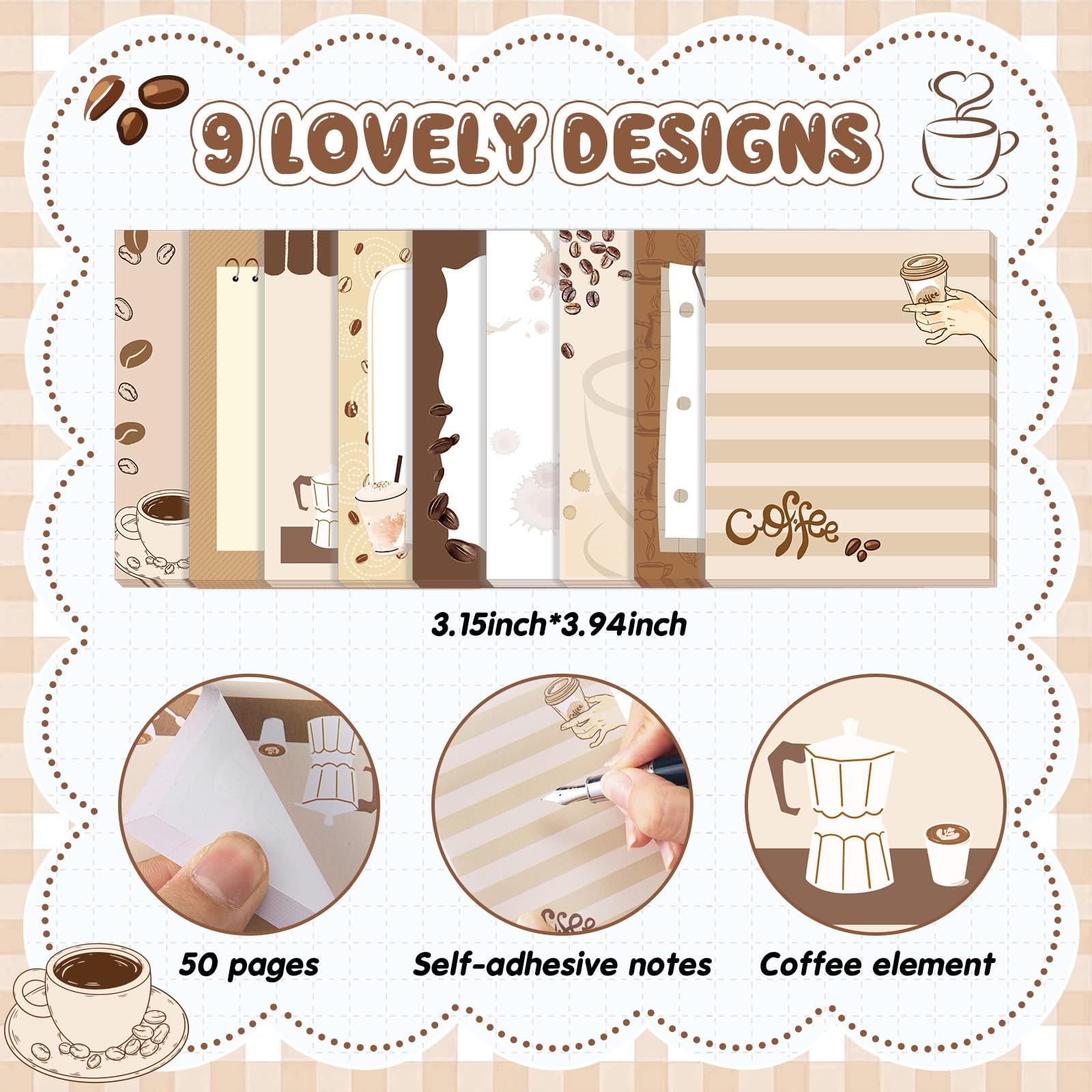 What You Will Receive: the package contains 9 pieces of coffee cute sticky notes in 9 different designs, 50 sheets for each pad, the abundant quantity and interesting design can meet your daily use and replacement needs, which you can share with your friends and colleagues