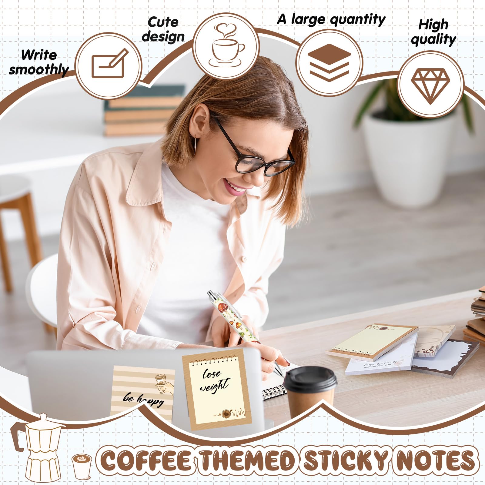 Reliable Materials: these coffee self stick note pads are made of quality paper material, with smooth writing surface, not easy to tear and break, printed with bright and vivid colors, not easy to fade, ready to serve you for a long time