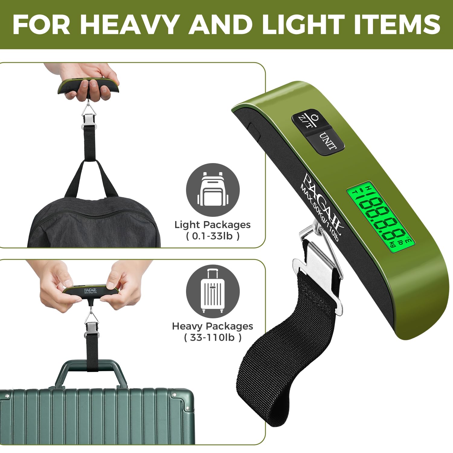 High Accurancy: Capacity with 110 lbs/50 kg, 0.1 lb/50 g precision; Its high accuracy helps you avoid overweight fees; Unit: lb/kg (convertible)