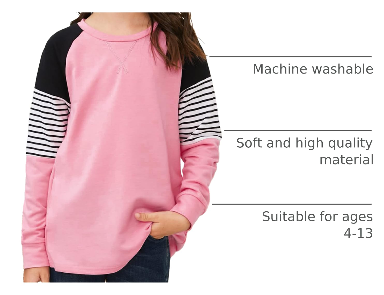 ♥ [Style]:The girls crew neck top with the regular fit can better suit your girl and modify your girl's shape.The top with side pockets is stylish and special for girls. Easy to pair with leggings and skirts
