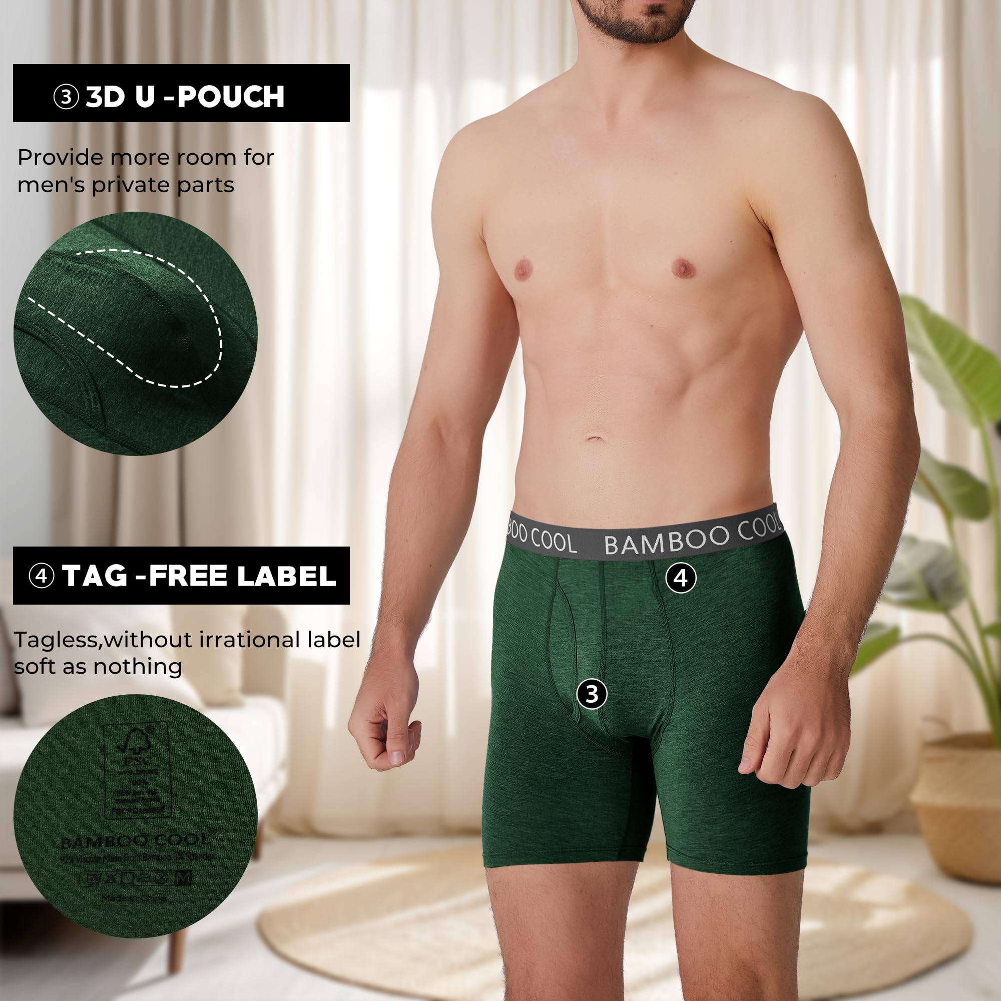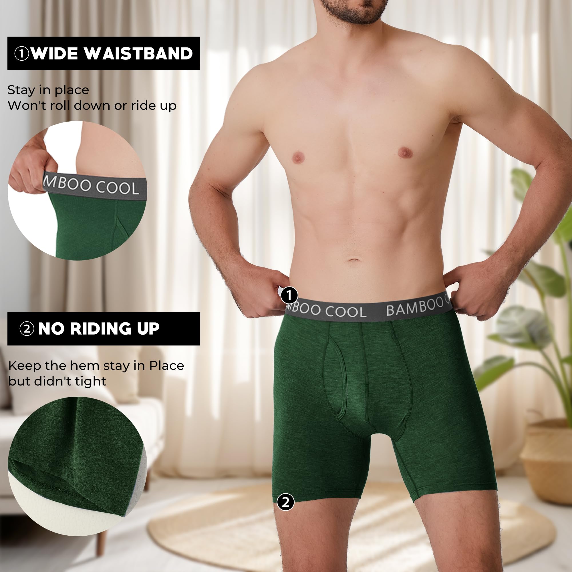 HIGH-QUALITY MATERIAL: Our men's boxer briefs are crafted from 92% viscose made from bamboo and 8% spandex, offering superior softness, breathability, and moisture-wicking properties. Compared to cotton, they are 20-30% more breathable and 2-3°C cooler, keeping you fresh and comfortable all day long