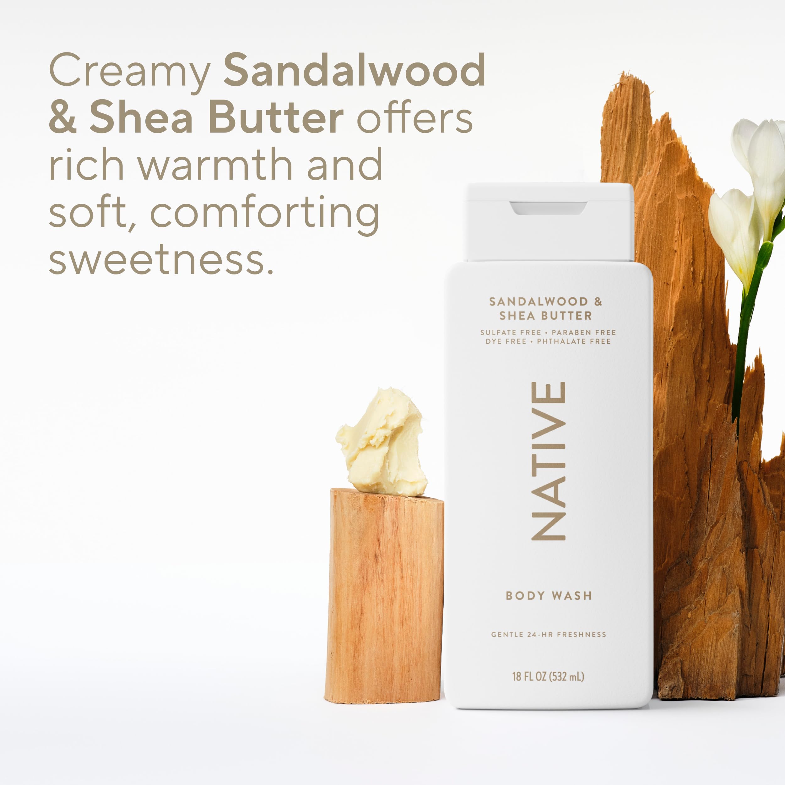 CREAMY SANDALWOOD & SHEA BUTTER SCENT: Enjoy rich warmth and soft, comforting sweetness. This body wash blends creamy sandalwood with notes of green apple and freesia for a sophisticated and nourishing shower experience.
