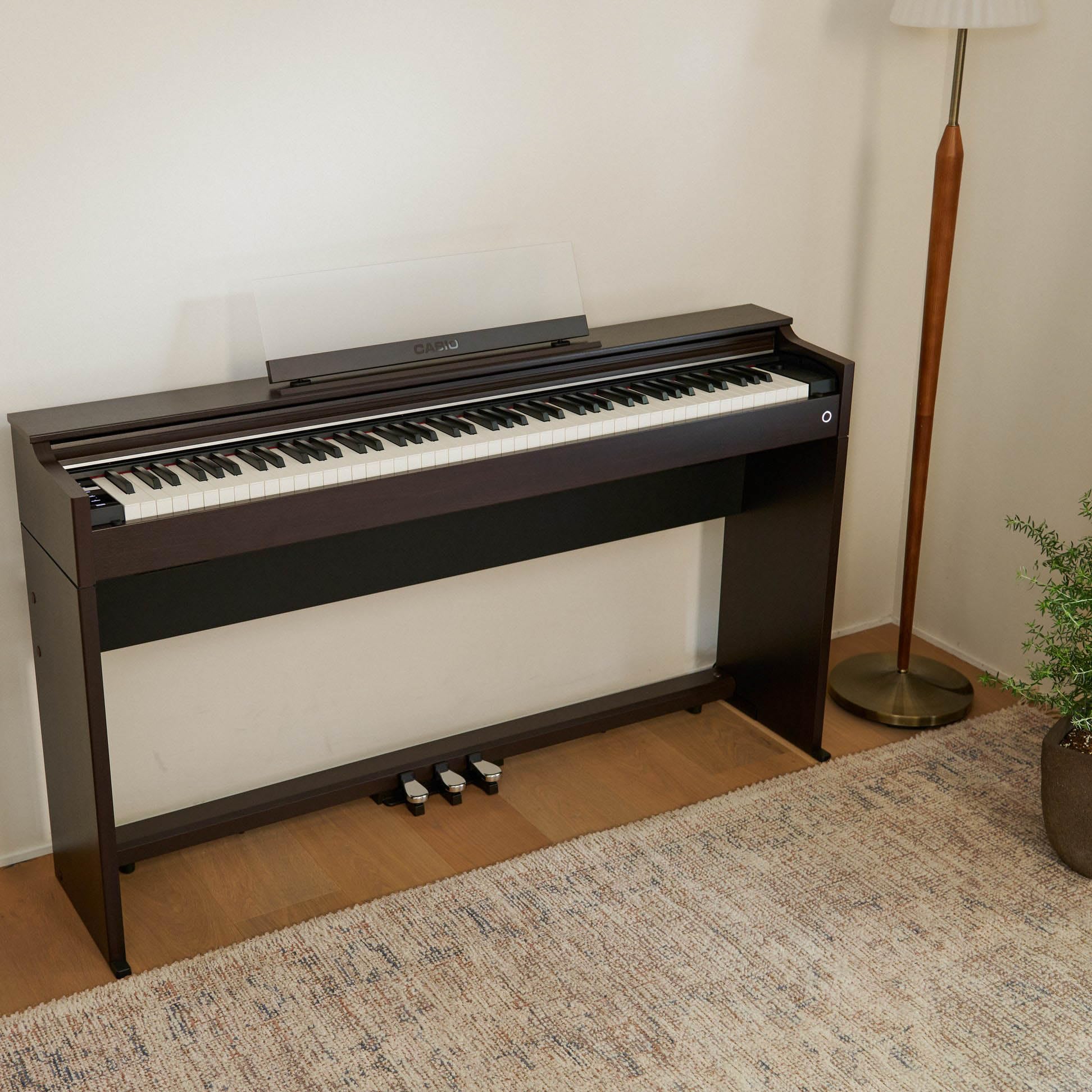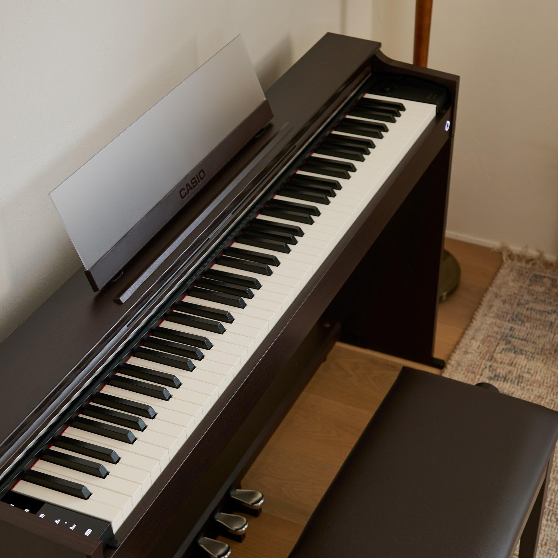 SOUND & TECHNOLOGY: The Casio digital piano features a Multi-Dimensional Morphing AiR Sound Source that delivers rich, expressive grand piano tones with natural resonance, while Lossless Audio Compression and the String Resonance System enhance authenticity