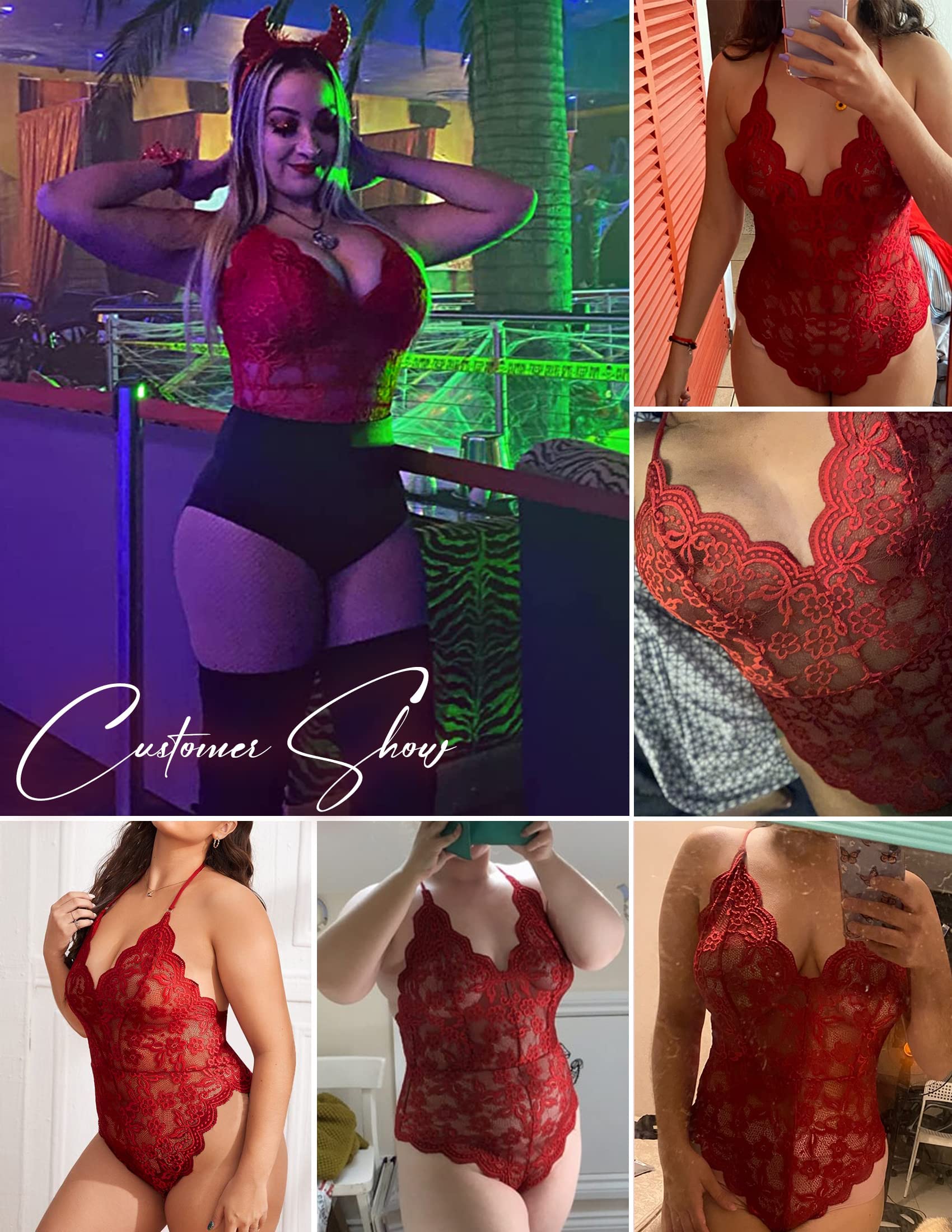 Package Content: One piece lingerie bodysuit. Note: The double-layer lace bodysuit offers a more structured fit, ideal for those who prefer less stretch. For a better fit, we recommend choosing one size larger for the double-layer lace version if you are between sizes.