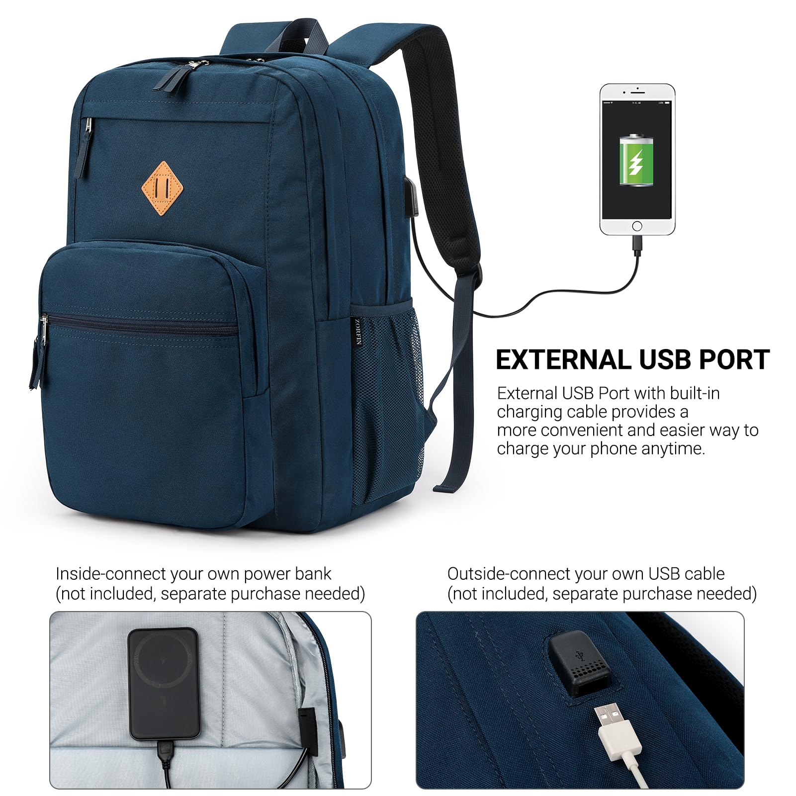 USB Port Design: This USB backpack features an external built - in USB charger and an internal built - in charging cable. It allows you to charge your phone conveniently while on the go. Note that the backpack itself doesn't have a power source; the USB charging port simply provides an easy way to charge.