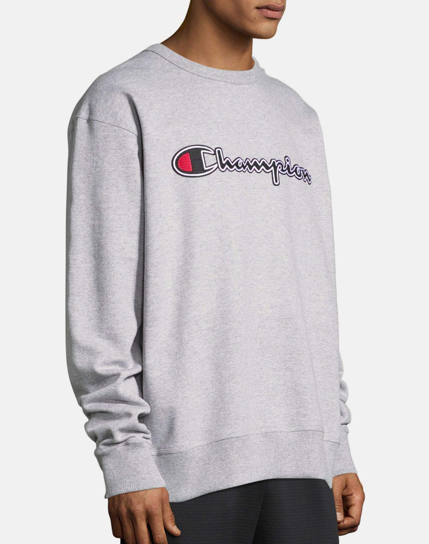 Description ALL ABOUT THE CREW. If you're looking for the ideal pullover, look no further than this Powerblendยฎ Crewneck Sweatshirt for men. Crafted with signature Powerblend Fleece, this sporty design has a soft, brushed interior for warmth without weighing you down. High-quality, cotton-blend fabrication delivers a piece that can be a longtime favorite. Extra stitching creates a sturdy finish, while ribbed cuffs and a lay-flat hem add to its signature appeal. The classic style is finished with a C patch at the left chest for an authentic touch. From joggers to shorts, this sweatshirt is the perfect match to your favorite Champion styles.