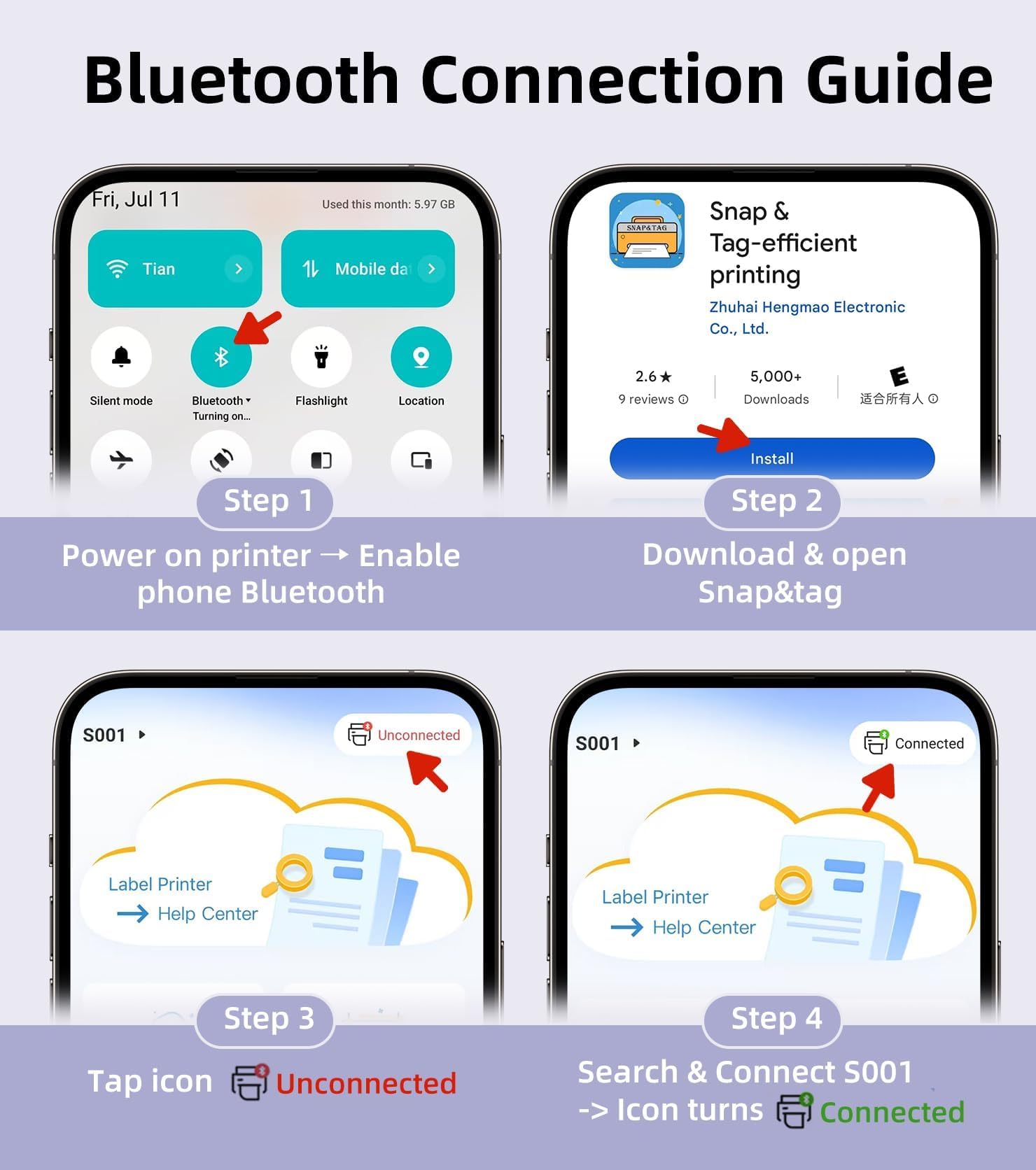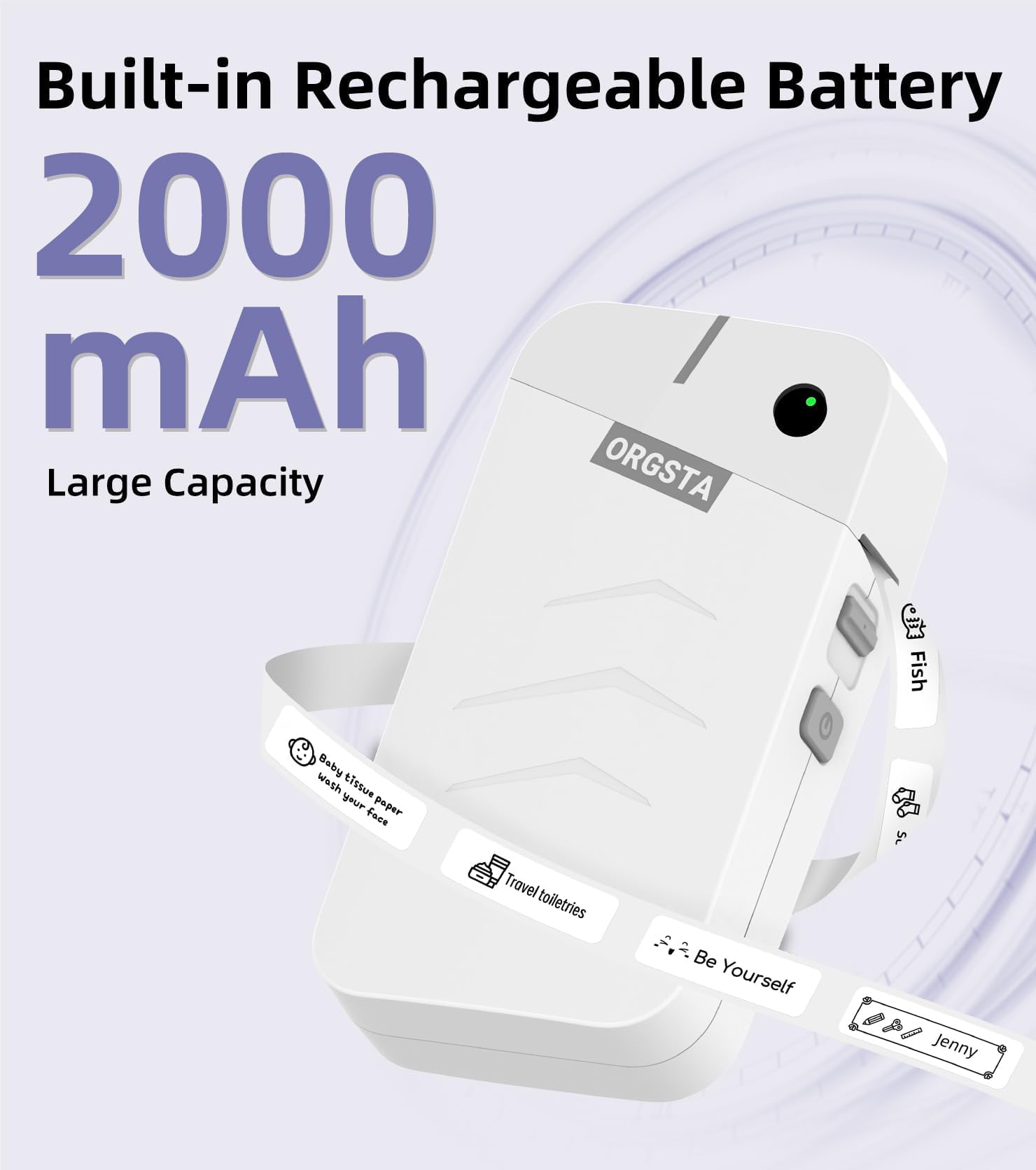 Running on Great Power: This label maker machine can print up to 35 inches per minute (15 mm/s), allowing for quick and easy label creation; Equipped with a built-in durable 2000 mAh rechargeable battery, it offers long-lasting performance and extended standby time