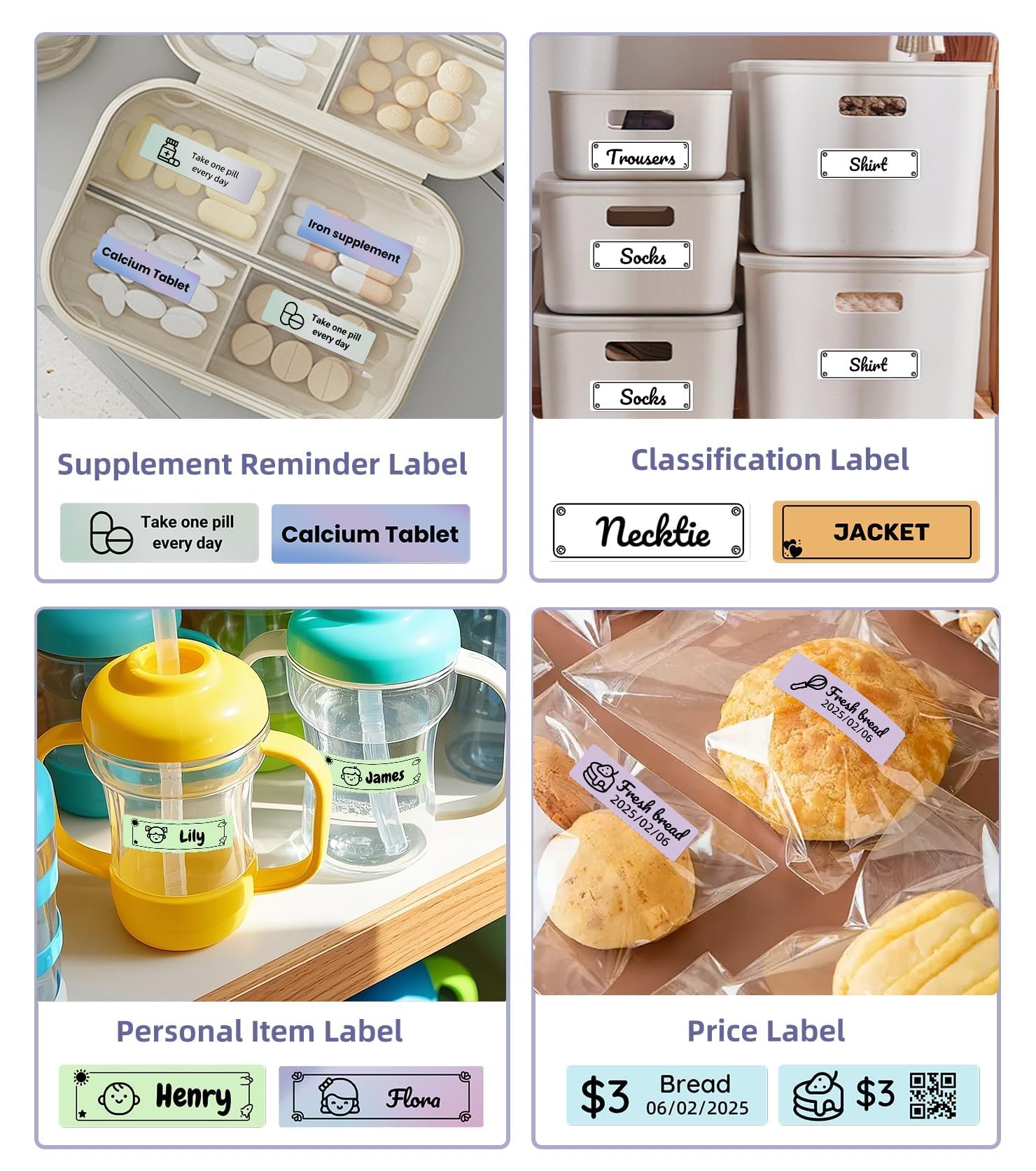 Wide Application: This label maker is ideal for both personal and professional use; At home, organize clothes, food storage, cosmetics, and mail; In the office, manage notebook tags, price tags, reminder tags, and other supplies; For schools, it helps teachers and students label classroom items, personal belongings, and name tags