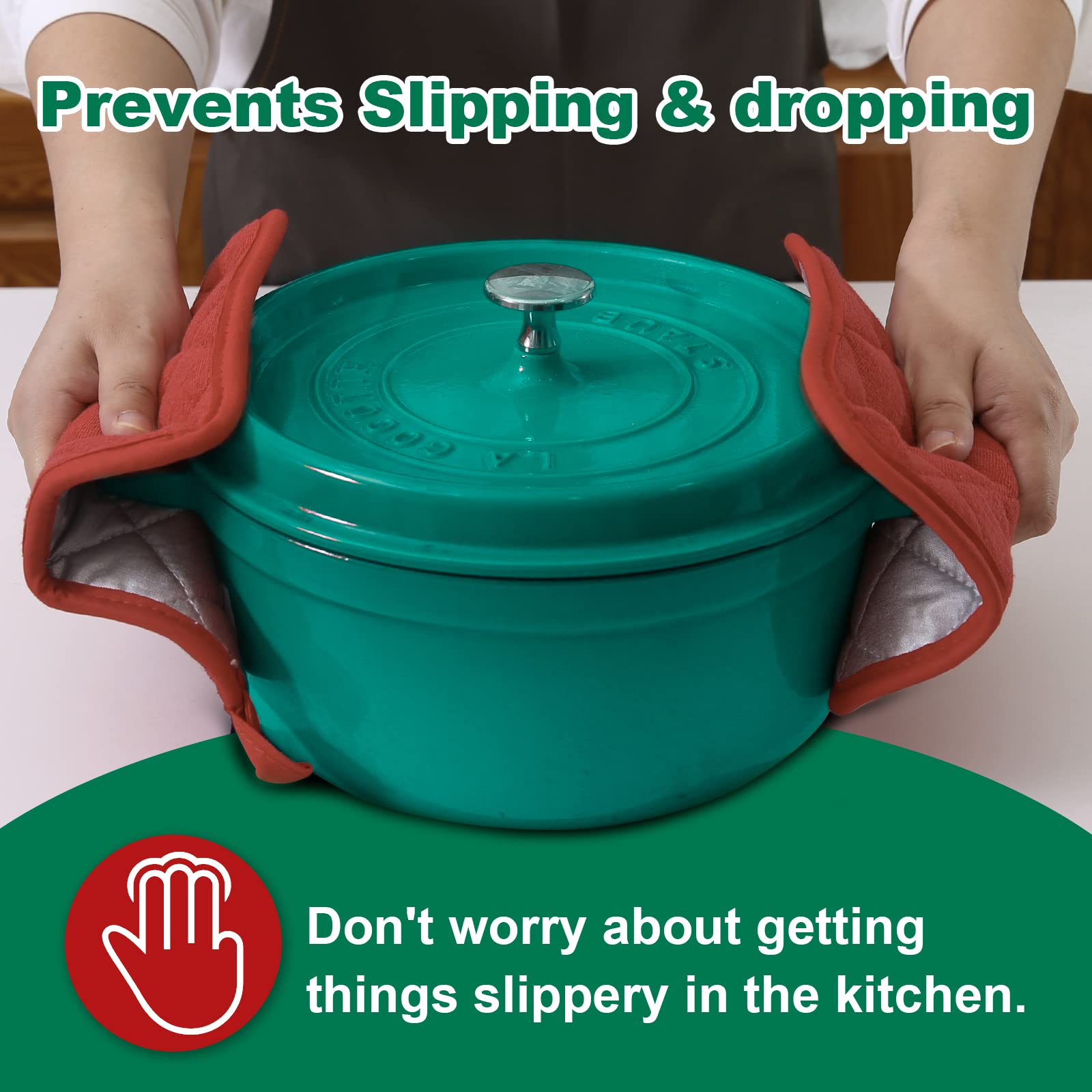 PROTECT YOU FROM HEAT - The construction of these pot holders for kitchen helps to protect your hands and arms from the heat of the oven. Do not use pot holders in a hot oven or over an open flame.