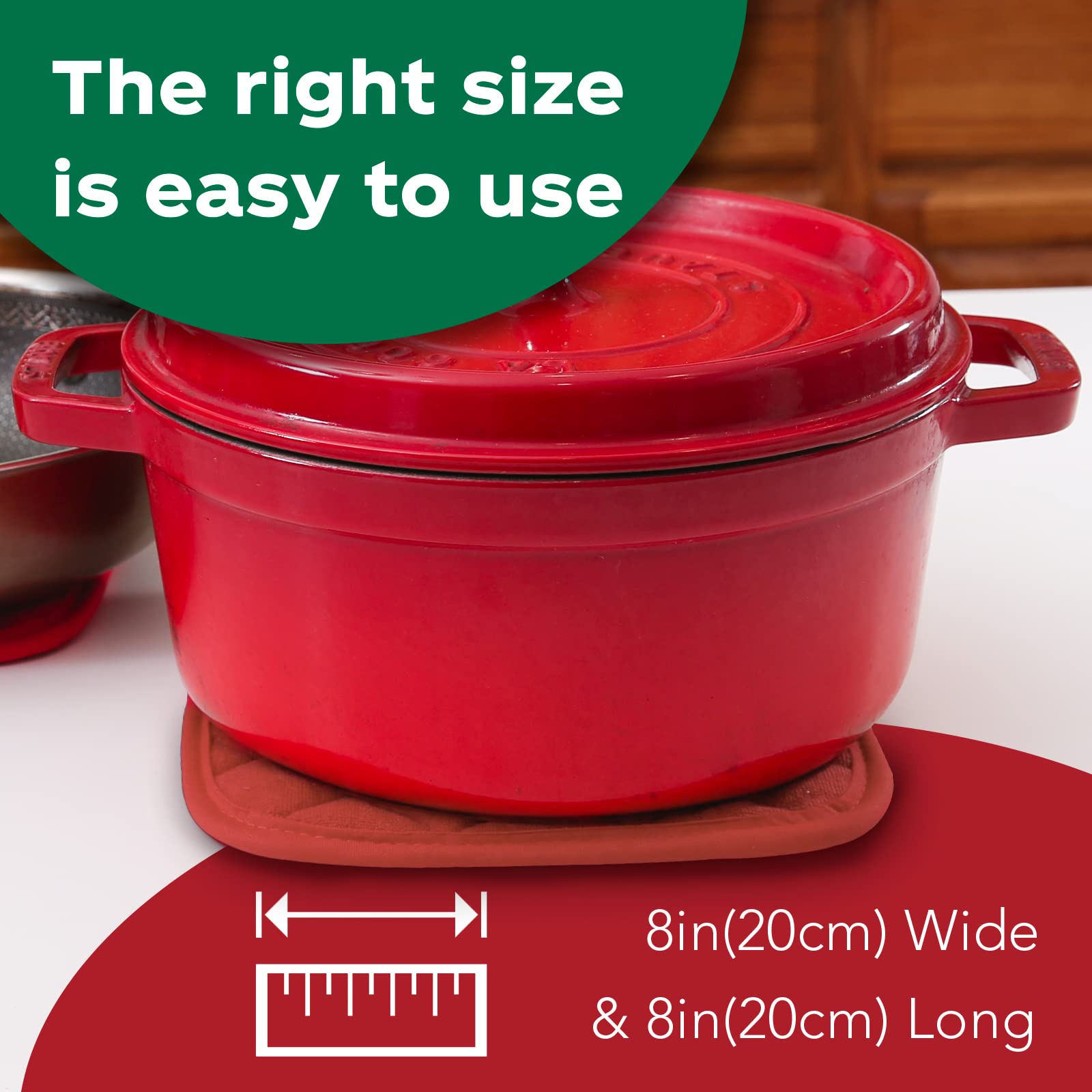 DURABLE AND FIRM GRIP - The flexible material allows for ease of use and firm grip on the hot dish or pot, adding safety to the cooking process.Fashionable, practical and safe to use in the kitchen as potholder or trivets. Perfect for indoor or outdoor usage all year round!