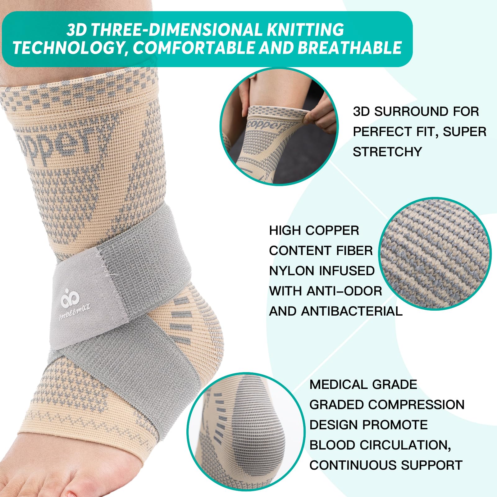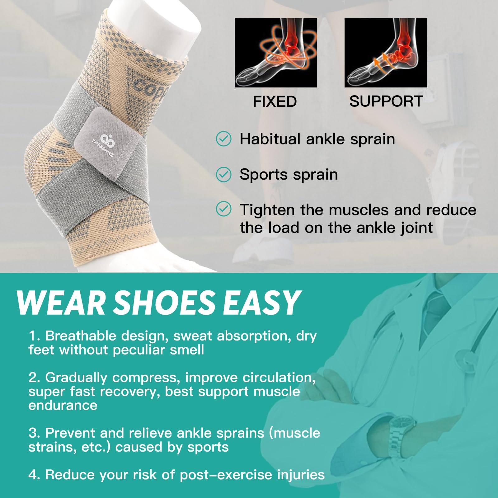 💙The Choice for Daily Protection: Our copper ankle compression sleeve are perfect for any activity and any occasions. The ankle brace compression sleeve is amazing at protecting your ankle and heel from a sprain during sports. Ankle braces are suitable for walking, running, jogging, hiking, cycling or gymnastics, fitness, training, football, basketball, tennis, or other sports.
