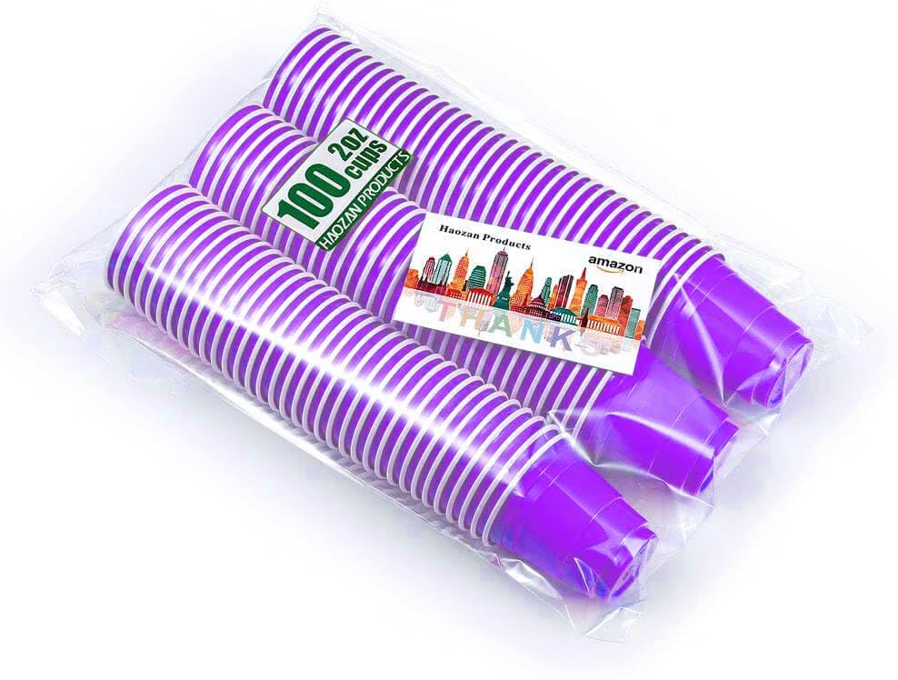 Includes 100 cups in bright purple, each with a capacity of 2 ounces