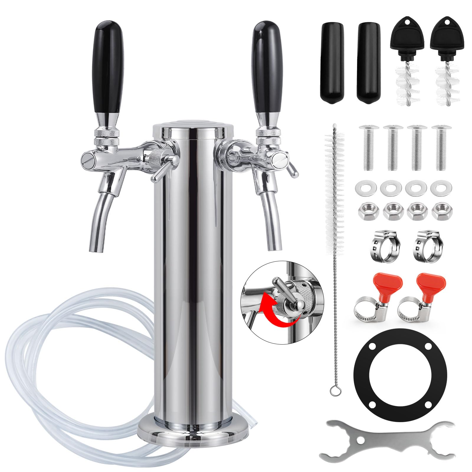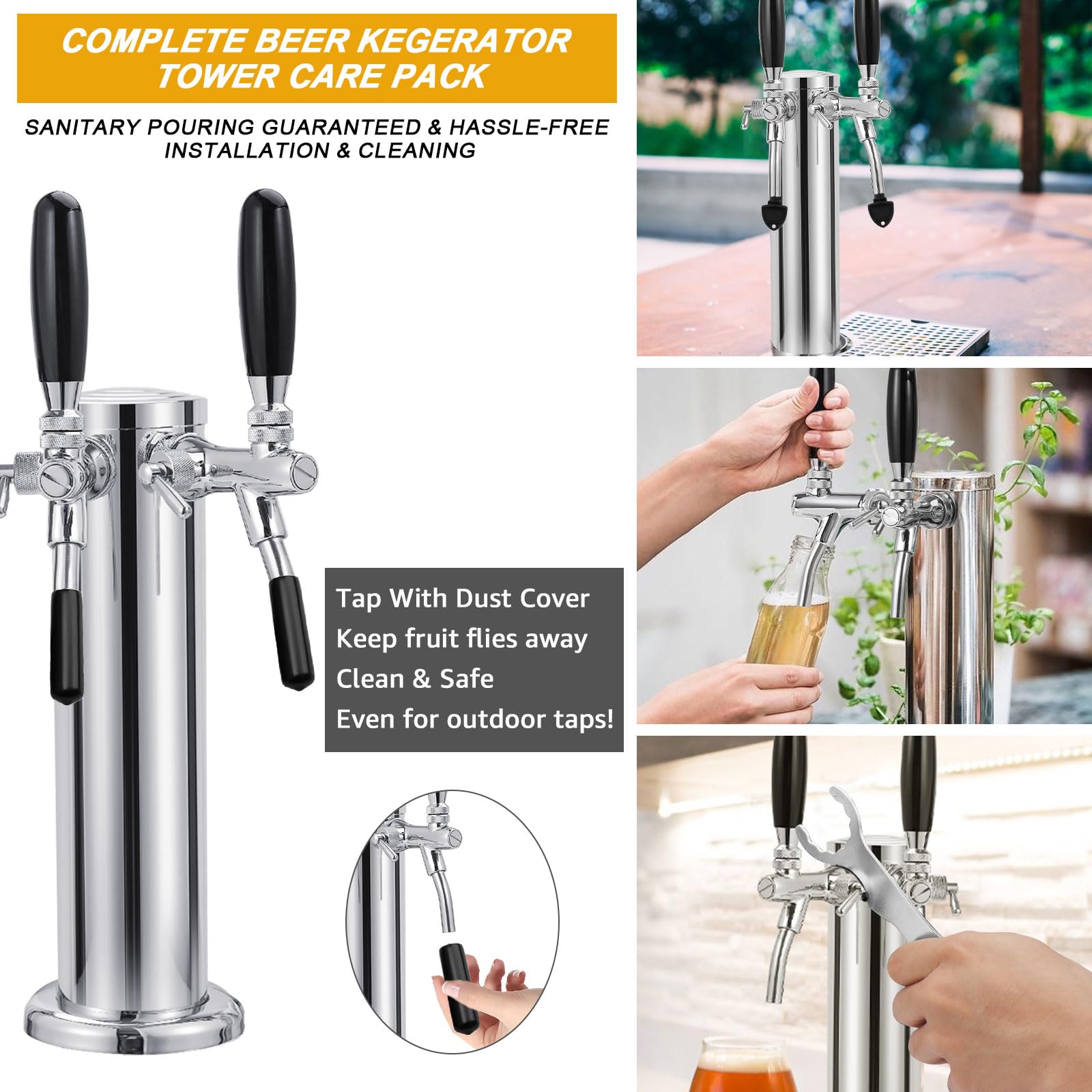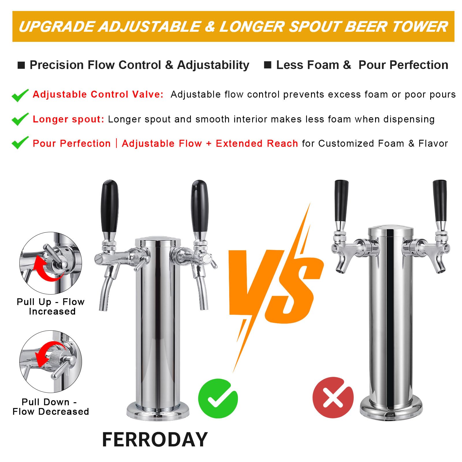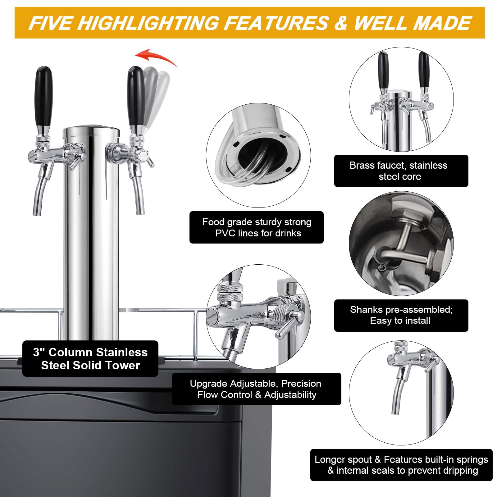 Improved Long Shank Adjustable Dual Faucet Kegerator Tower: The flow-control faucet enables precise pour adjustment and exceptionally user-friendly operation. Its extended spout and polished interior effectively minimize foam formation,. Whether you're a homebrewing enthusiast building your dream kegerator or a commercial bar owner committed to premium customer experiences, choose our 2 keg tap tower to master the art of the perfect pour. Elevate your dispensing experience today